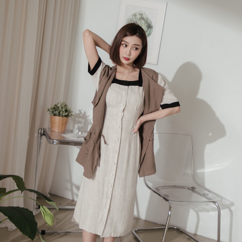 Space Picnic|方領排釦棉麻洋裝-2色【C21072033】