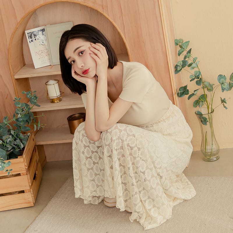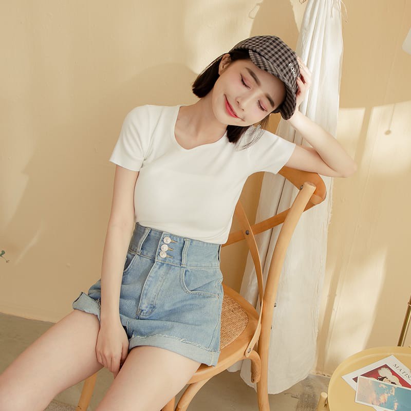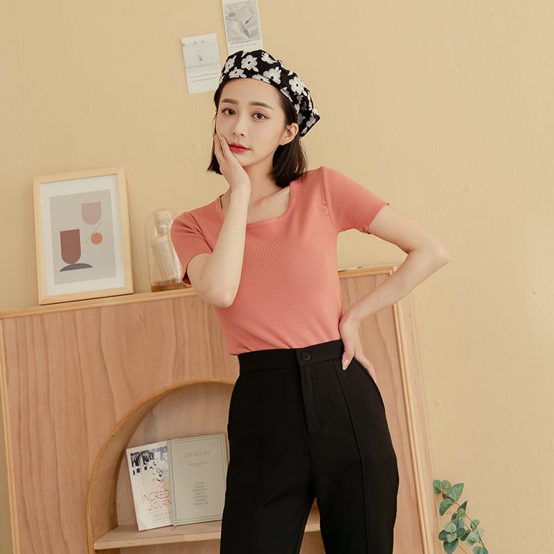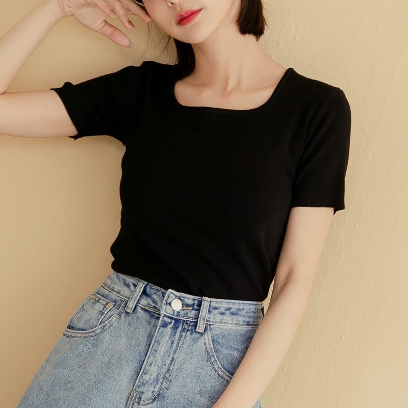 Space Picnic|素面U領針織短袖上衣【C21011036】