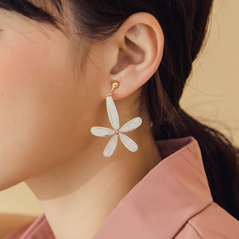 Space Picnic|五瓣立體白花耳環【C20037007】