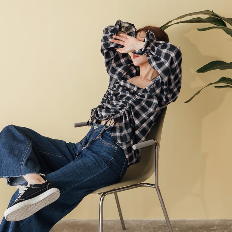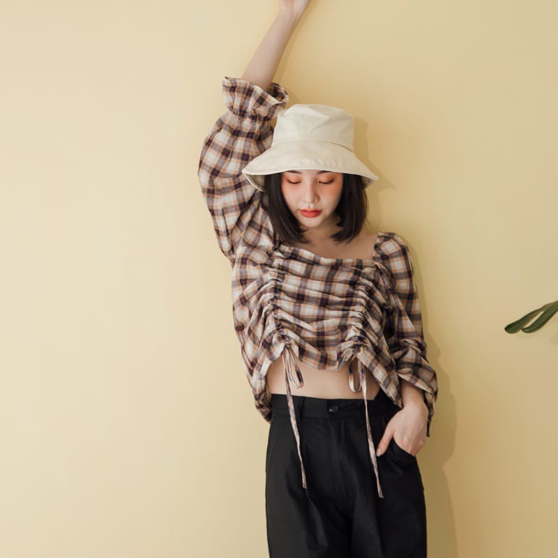 Space Picnic|方領格紋雙抽繩短袖上衣【C20033046】