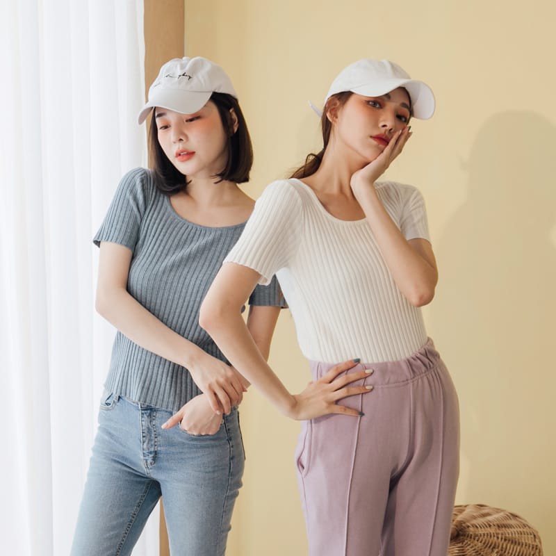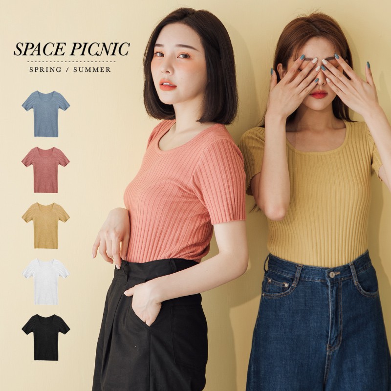 Space Picnic|針織壓紋U領短袖上衣【C20033014】