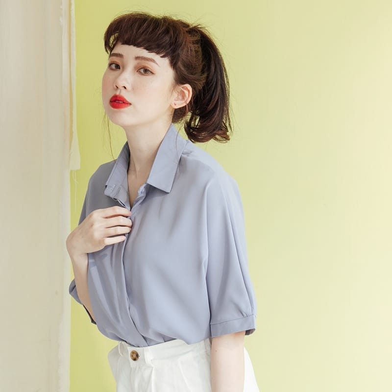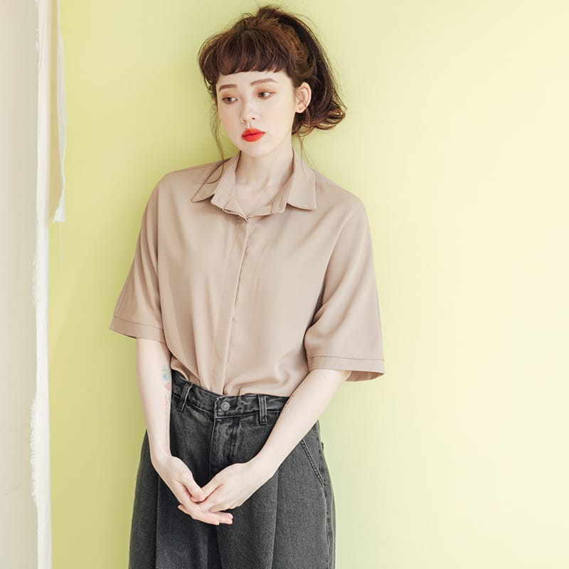 Space Picnic|素面滑料隱藏釦短袖襯衫【C20042034】