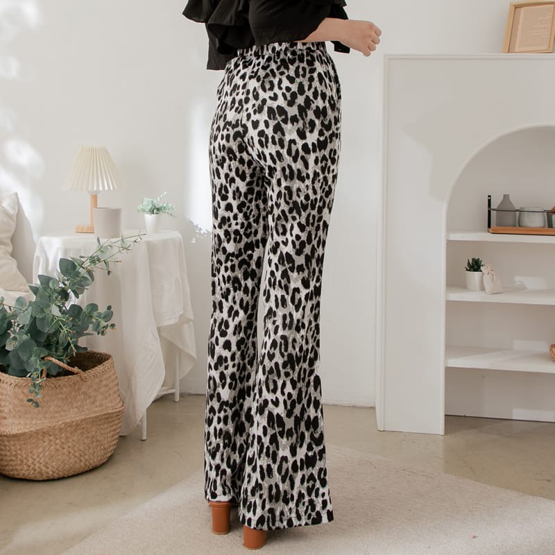 Space Picnic|豹紋側開衩腰鬆緊長褲【C21054085】