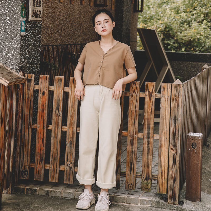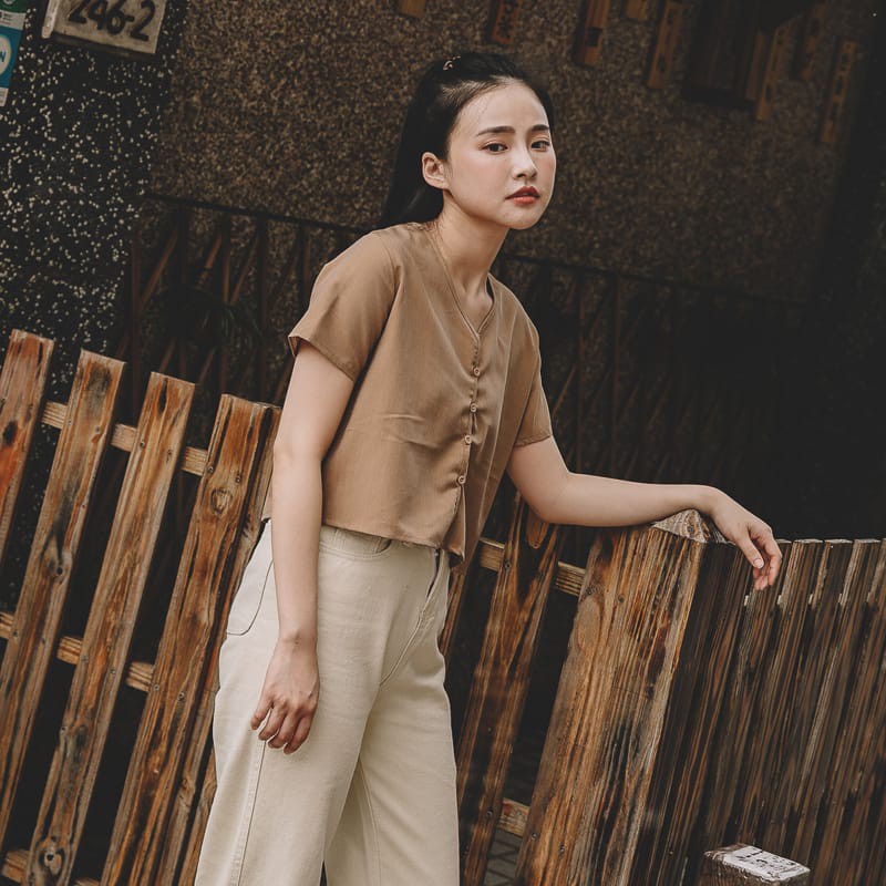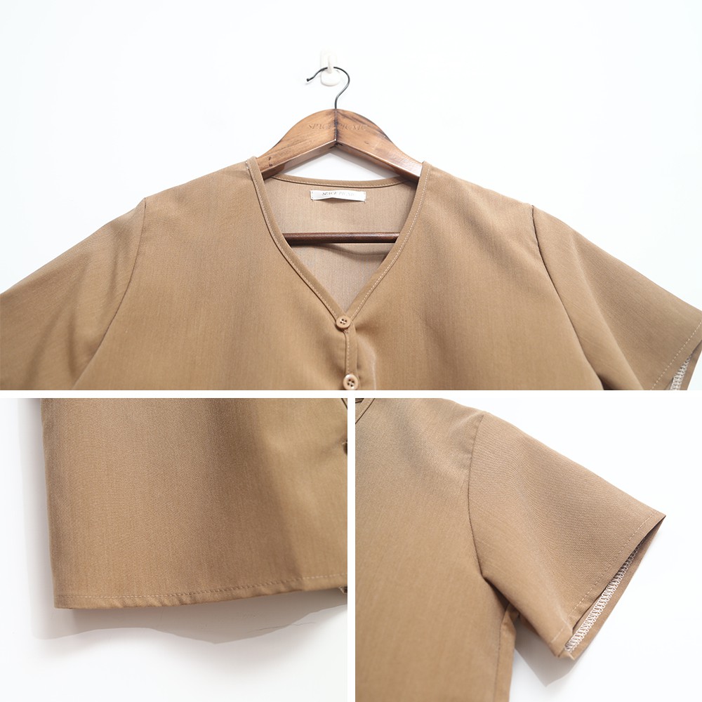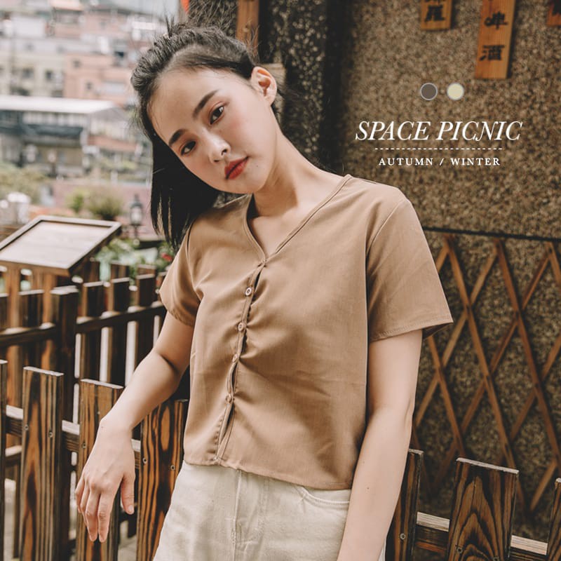Space Picnic|自設款-V領排釦短版短袖上衣【C20091017】