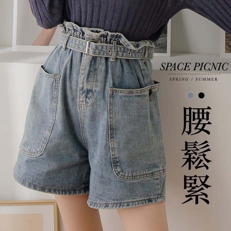 Space Picnic|花苞高腰單寧牛仔短褲-附腰帶【C21031056】