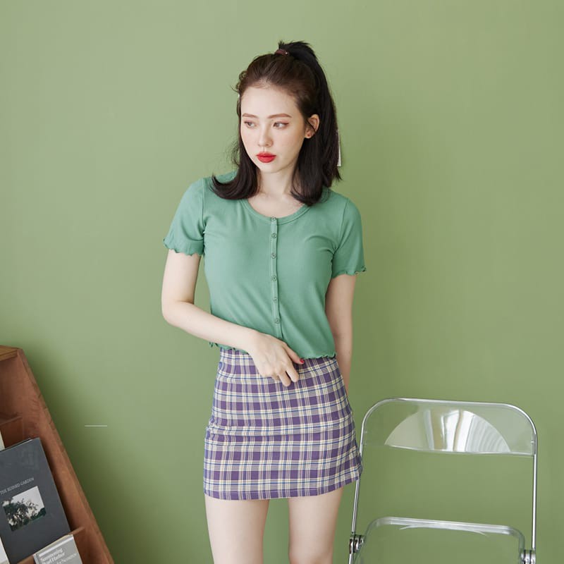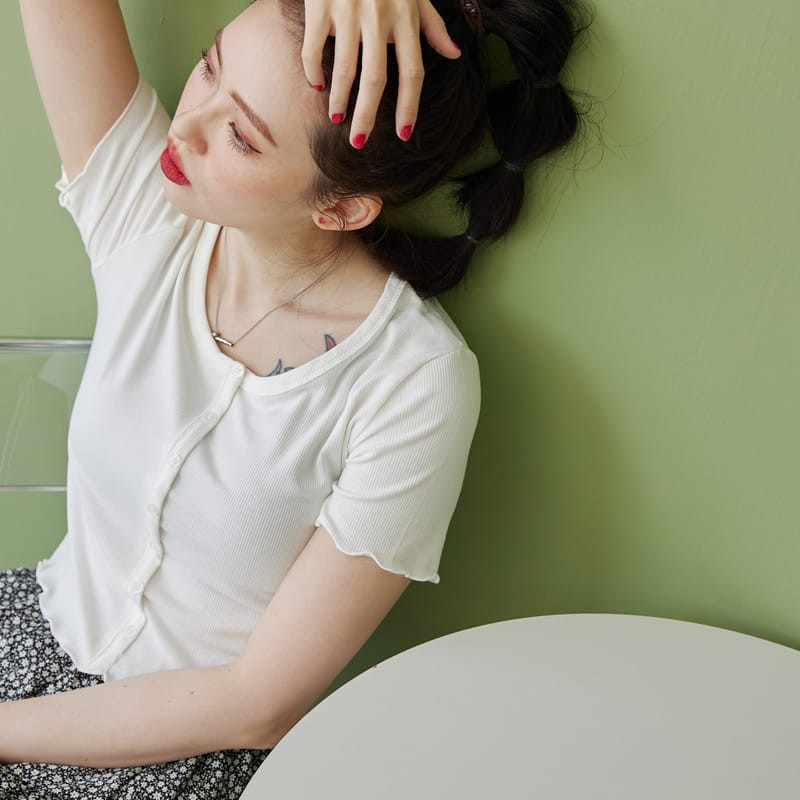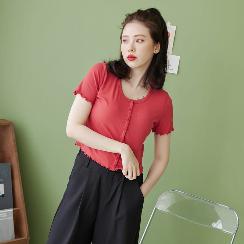 Space Picnic|大圓領坑條排釦捲邊上衣【C21054090】