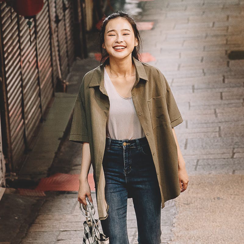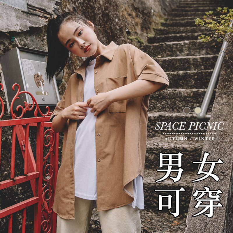 Space Picnic|自設款-素面口袋短袖襯衫【C20091018】