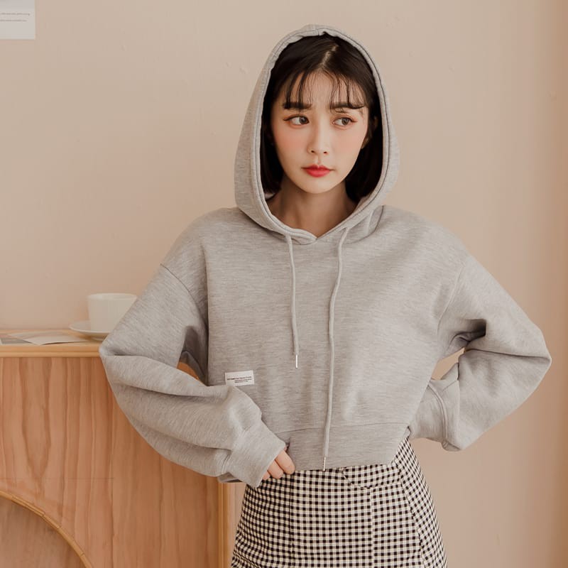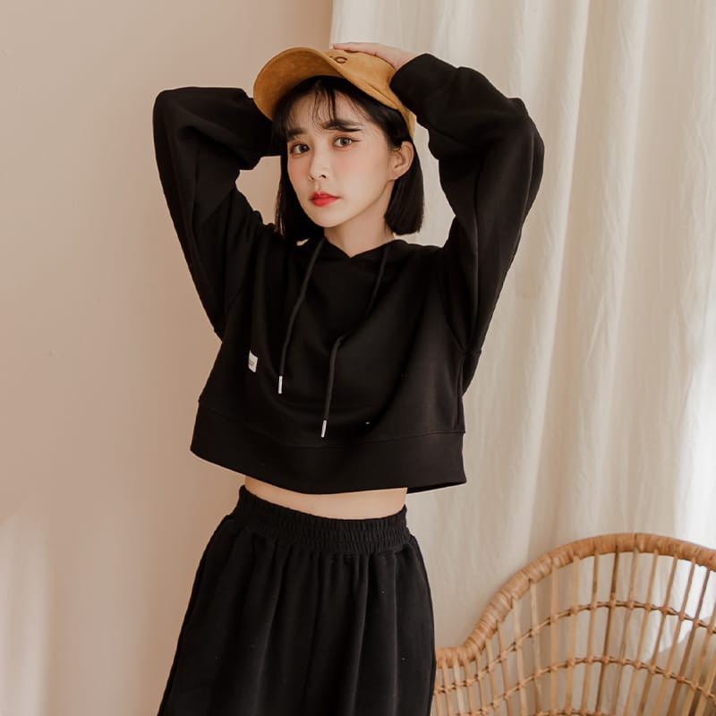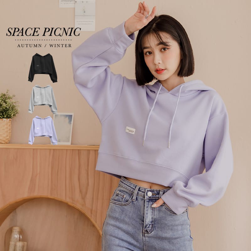 Space Picnic|素面小布標短版連帽上衣【C20125039】