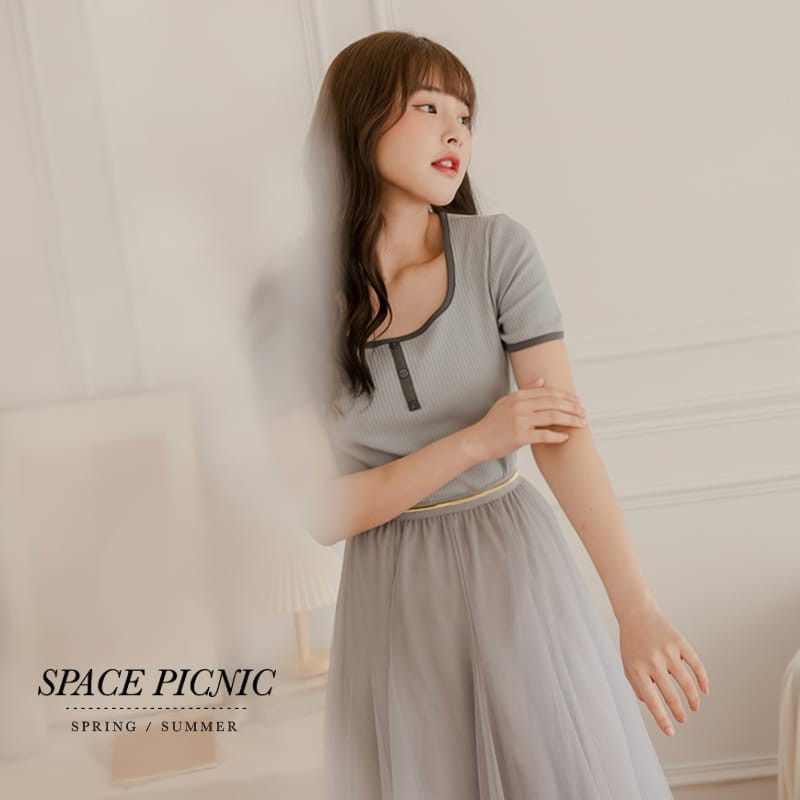 Space Picnic|滾邊U領上衣-5色【C21073009】