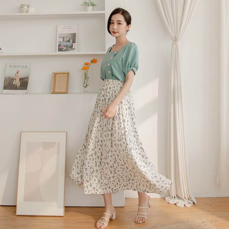 Space Picnic|單色花雪紡長裙【C21054019】