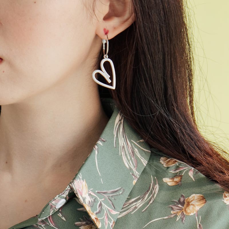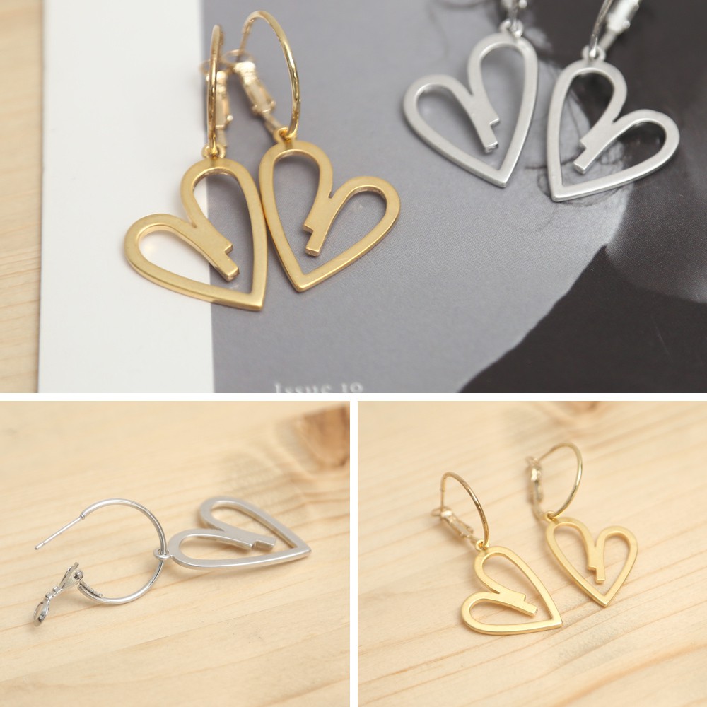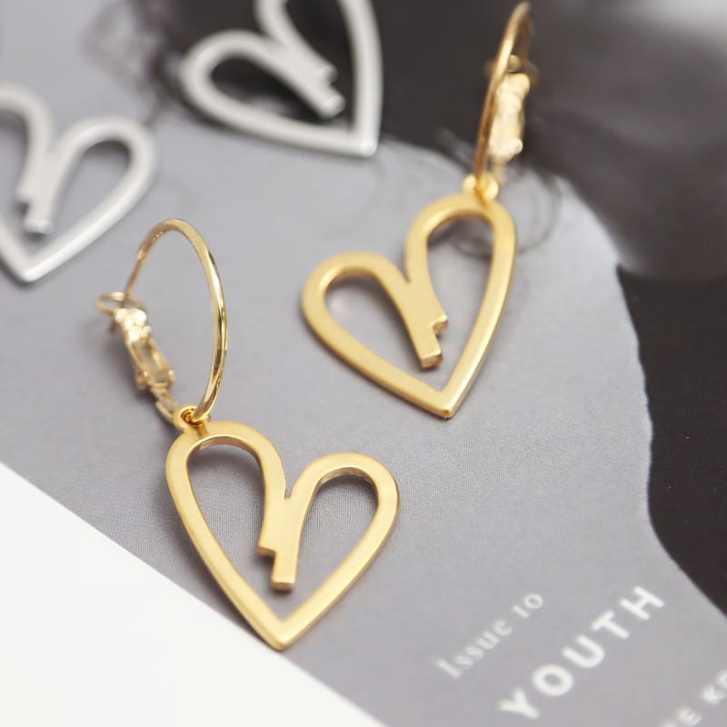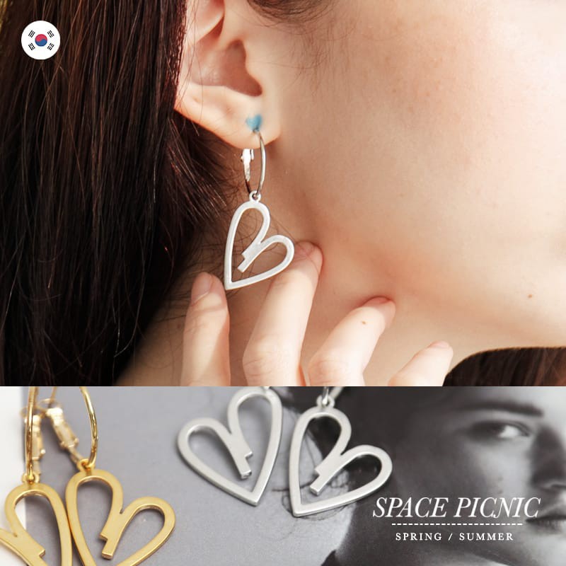 Space Picnic|正韓-垂墜簍空愛心金屬耳環【K20044017】