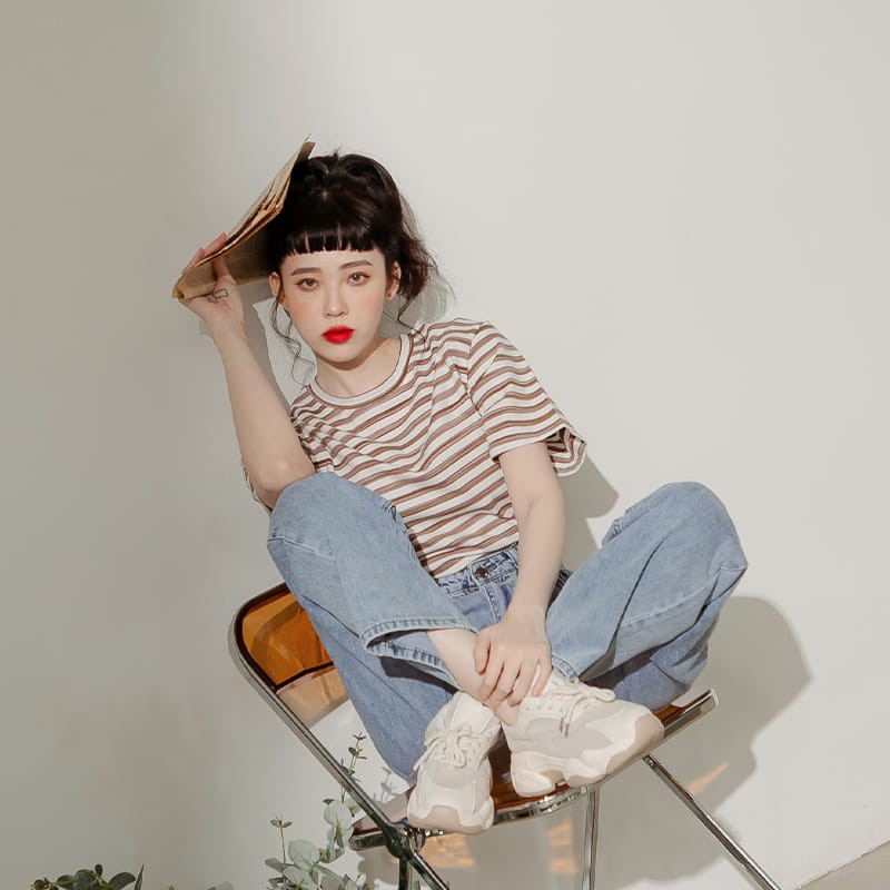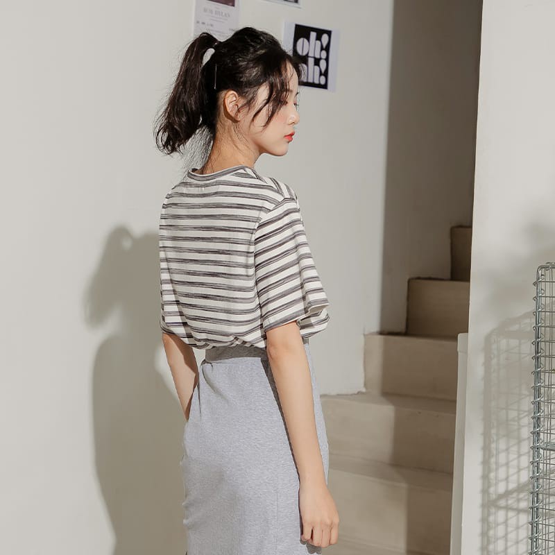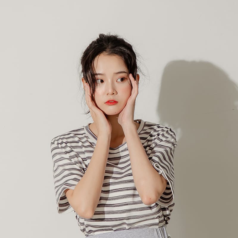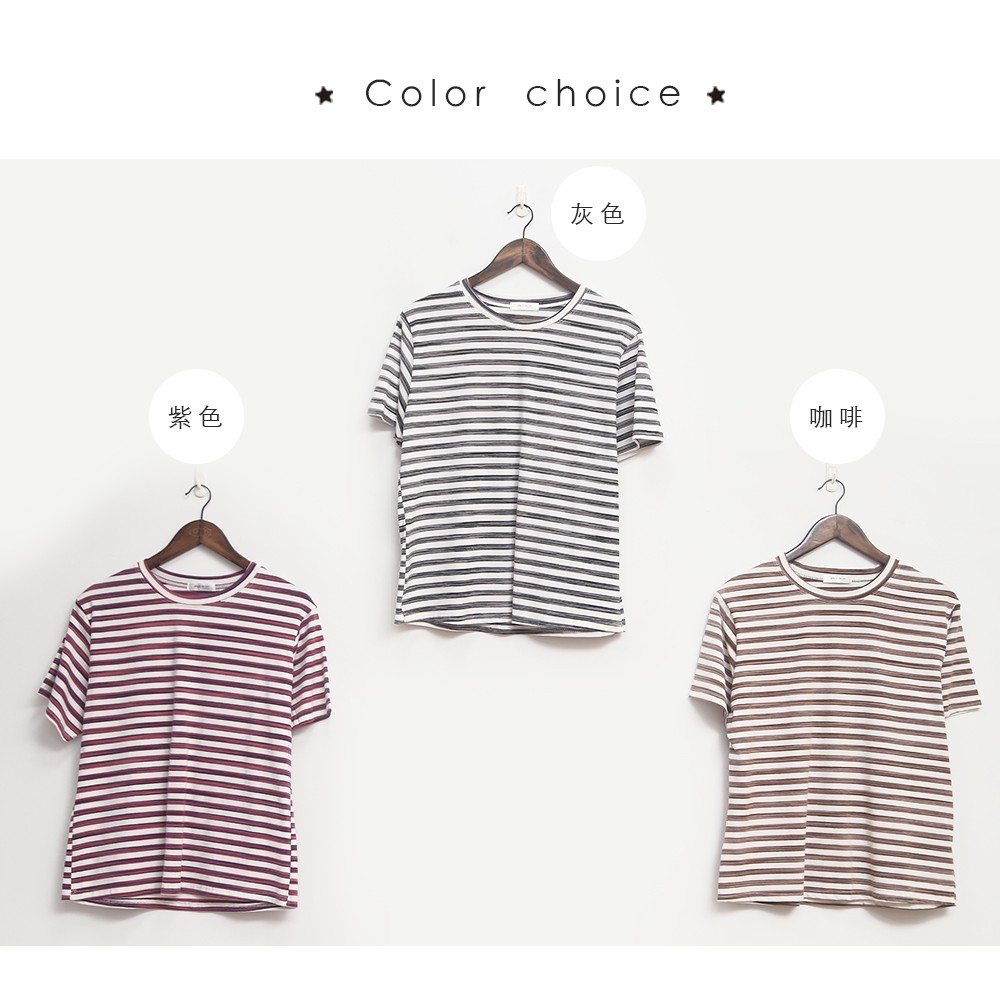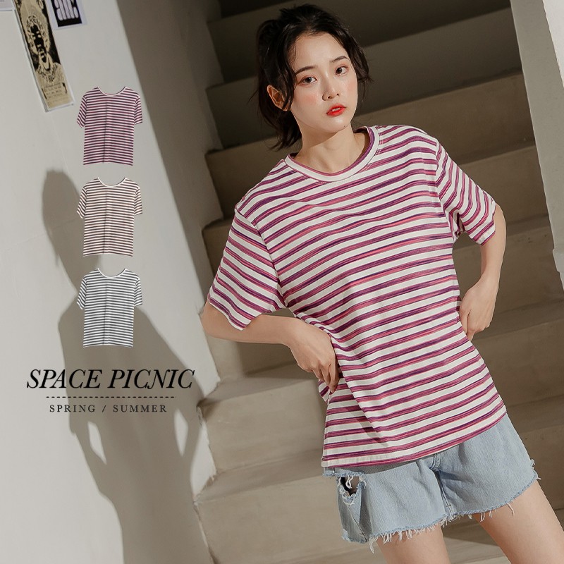 Space Picnic|跳色細條紋圓領短袖上衣【C21031048】