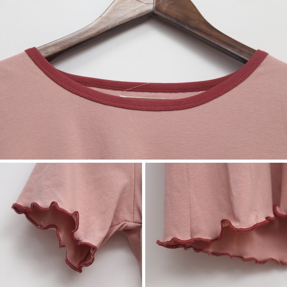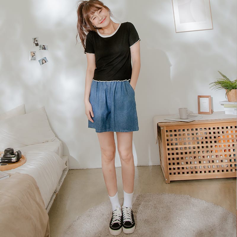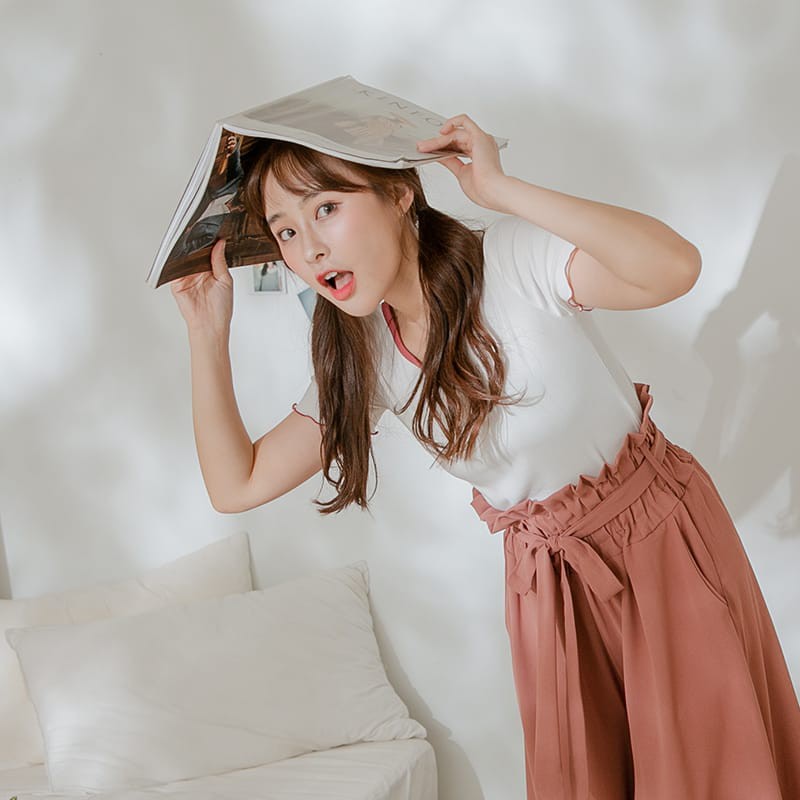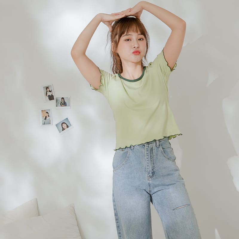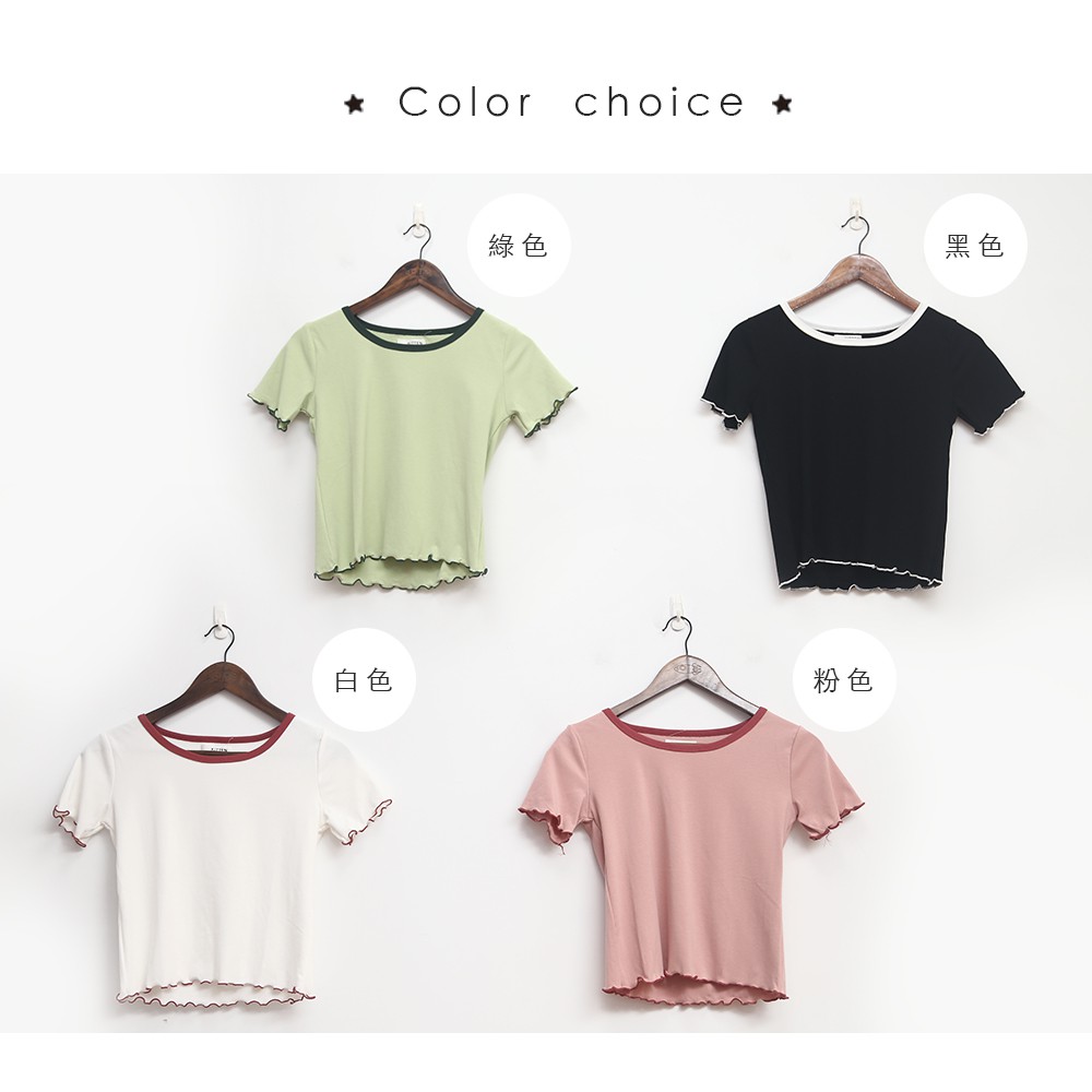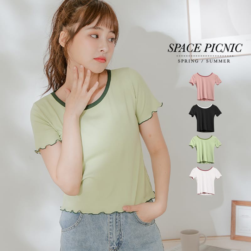 Space Picnic|拼色捲邊短版T恤【C21054010】