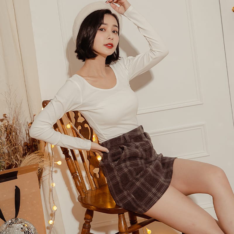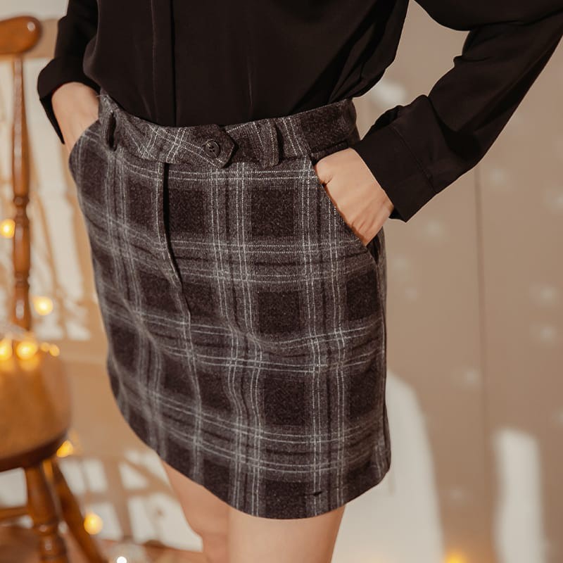 Space Picnic|格紋毛呢雙口袋短褲裙【C20114003】