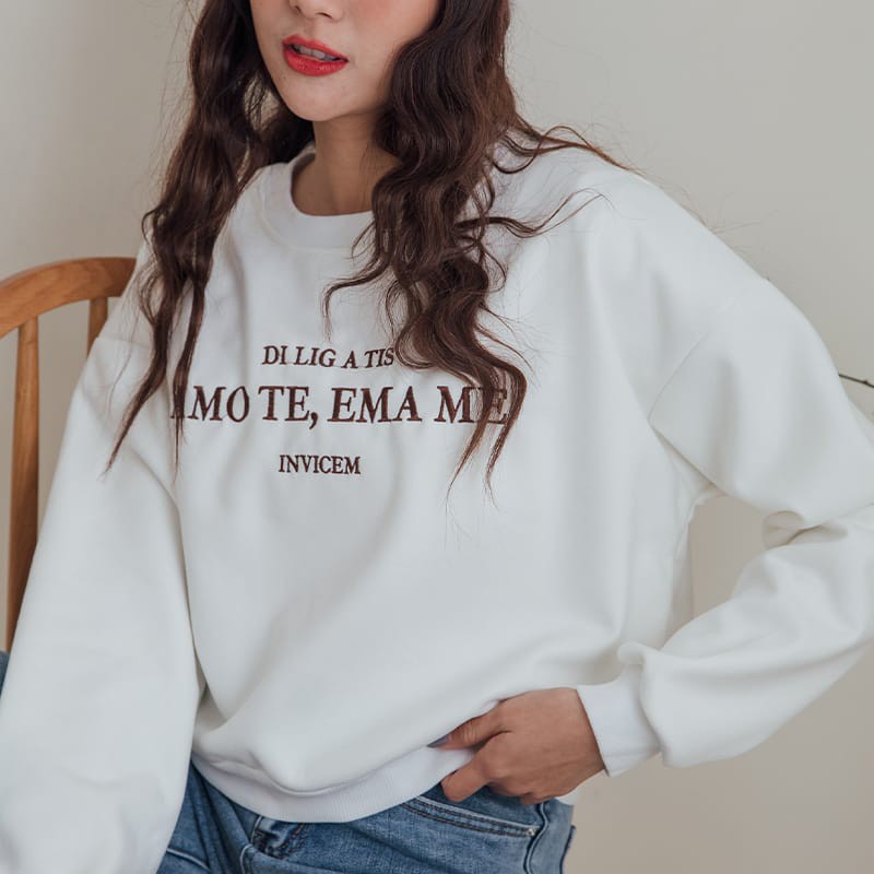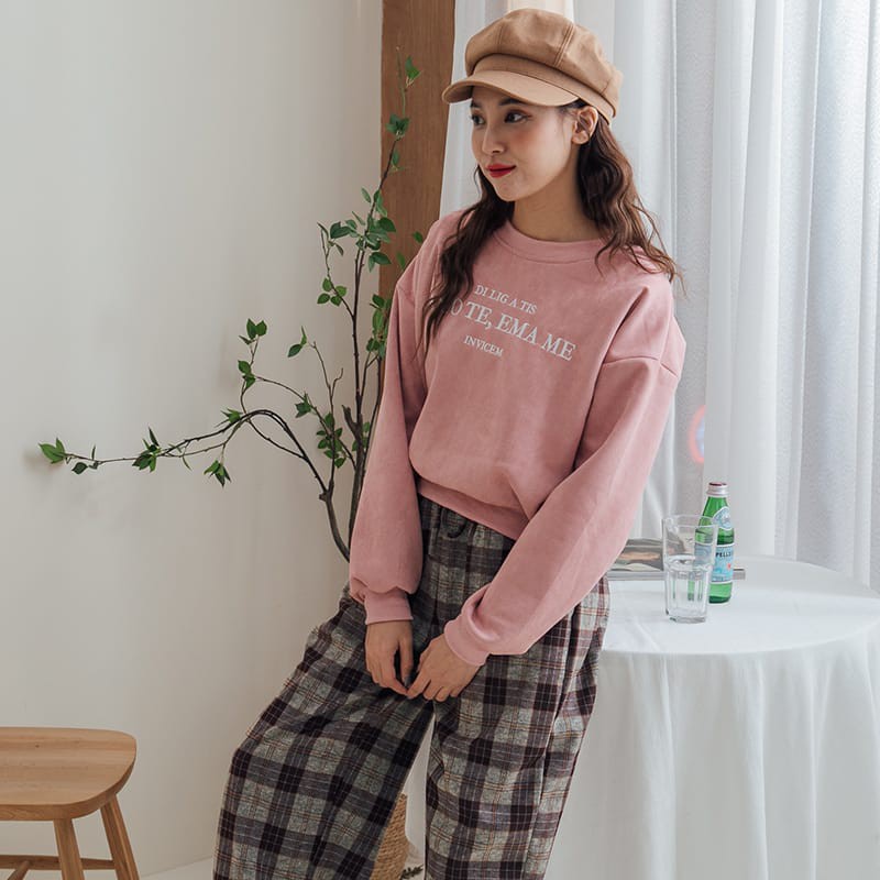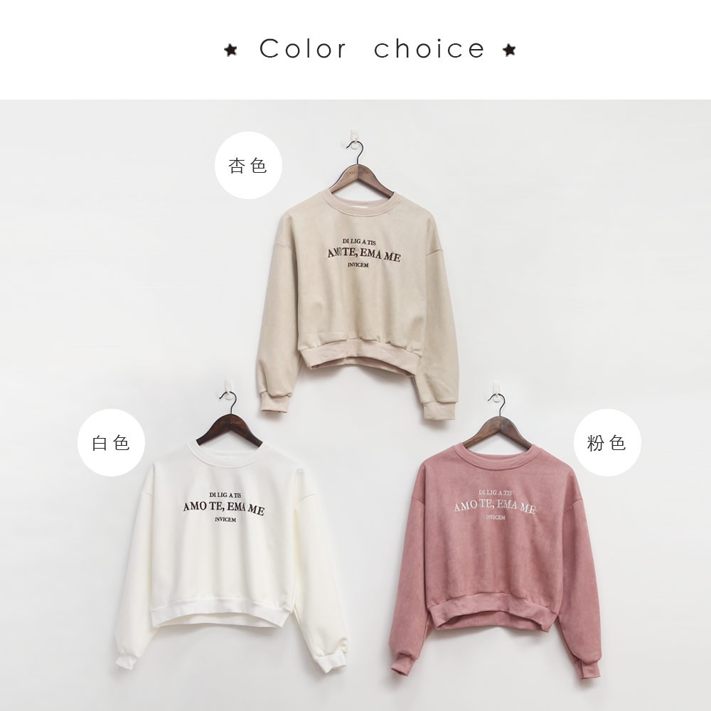 Space Picnic|電繡字母麂皮短版長袖上衣【C20125009】