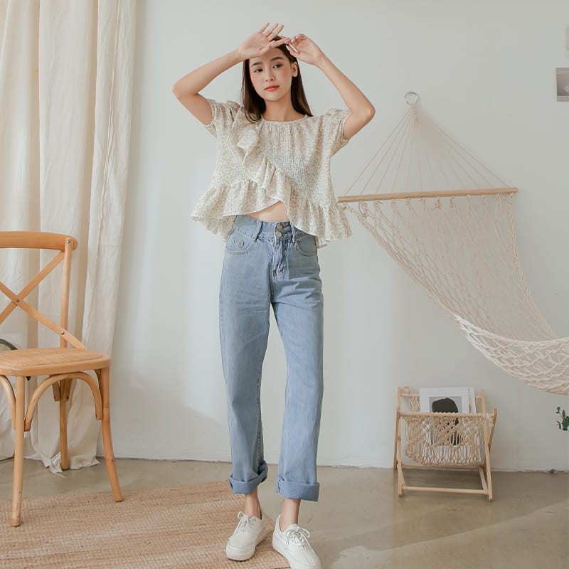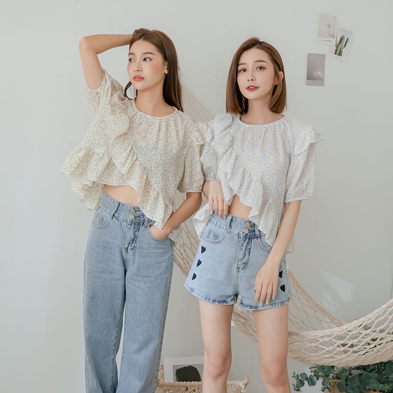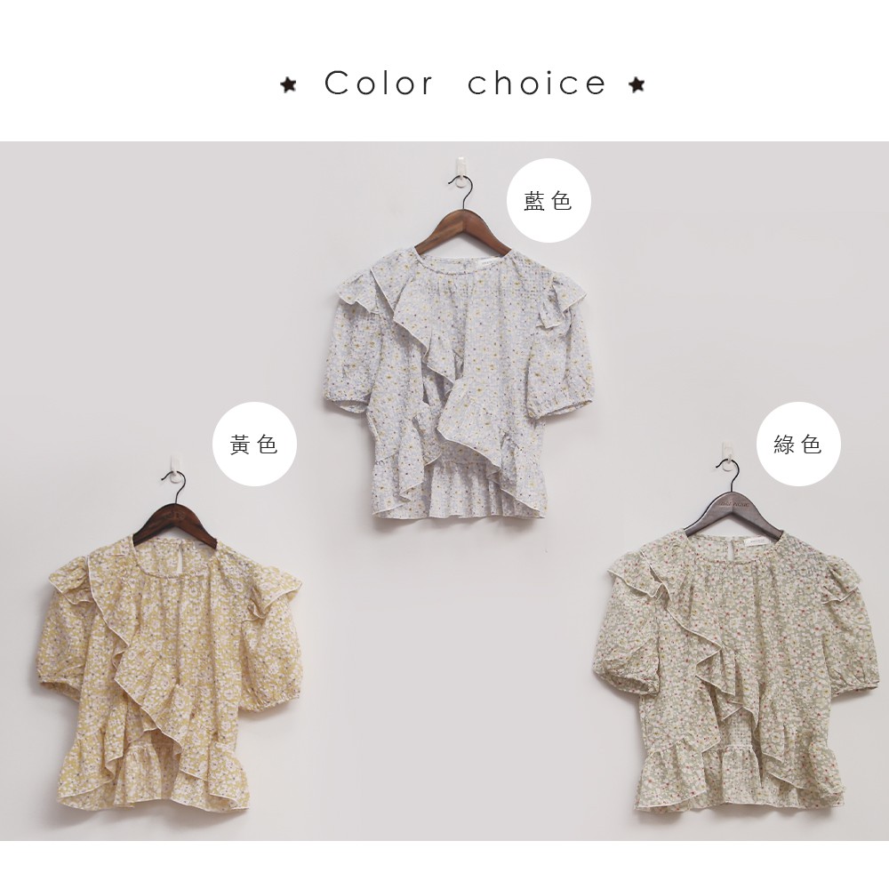 Space Picnic|碎花大荷葉滾邊短袖上衣【C21034005】