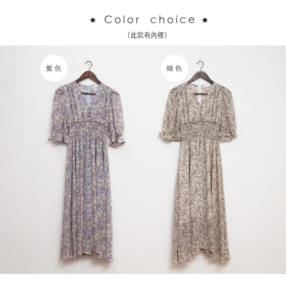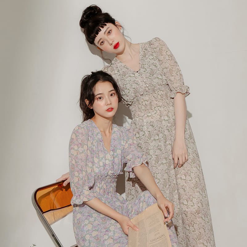 Space Picnic|-5KG復古碎花高腰微透短袖洋裝【C21034012】