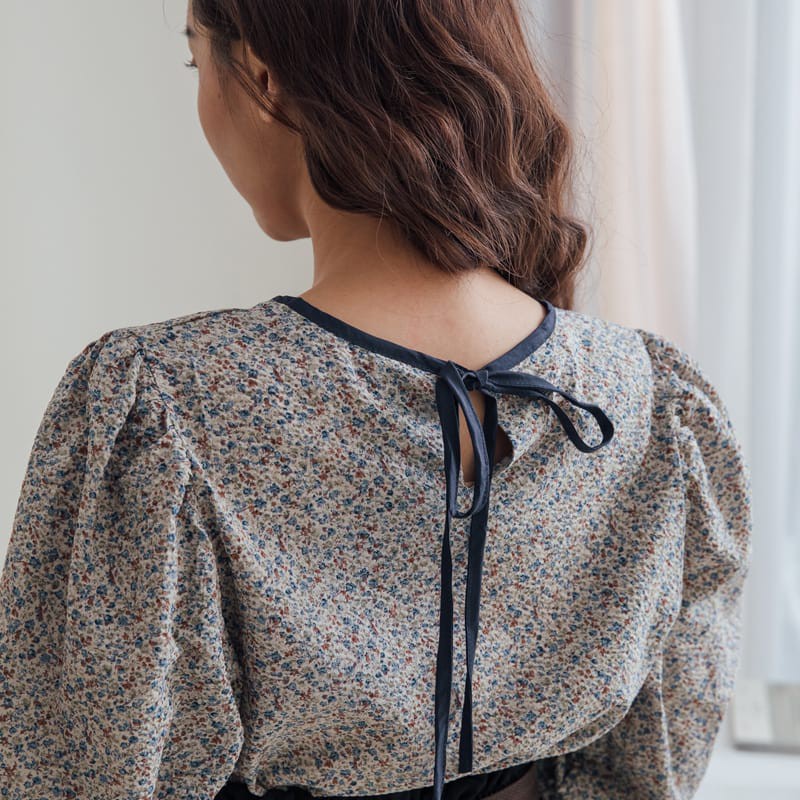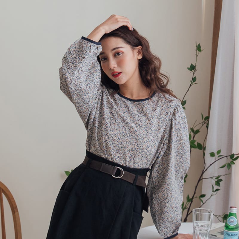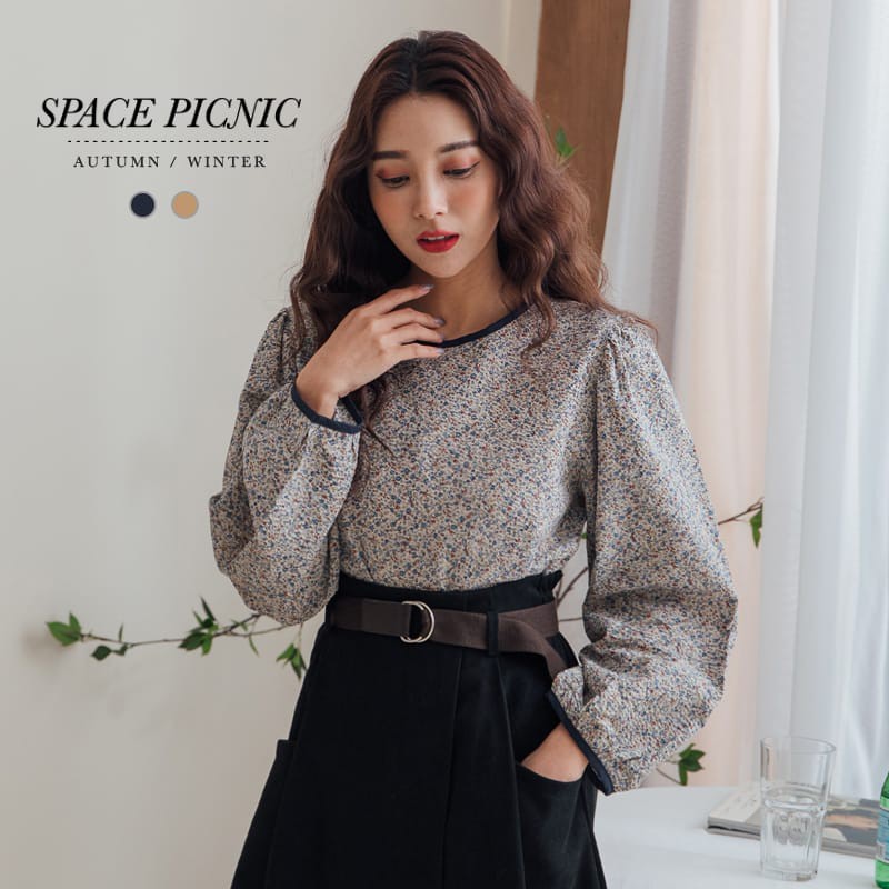 Space Picnic|碎花肩抓皺澎長袖上衣【C20125028】