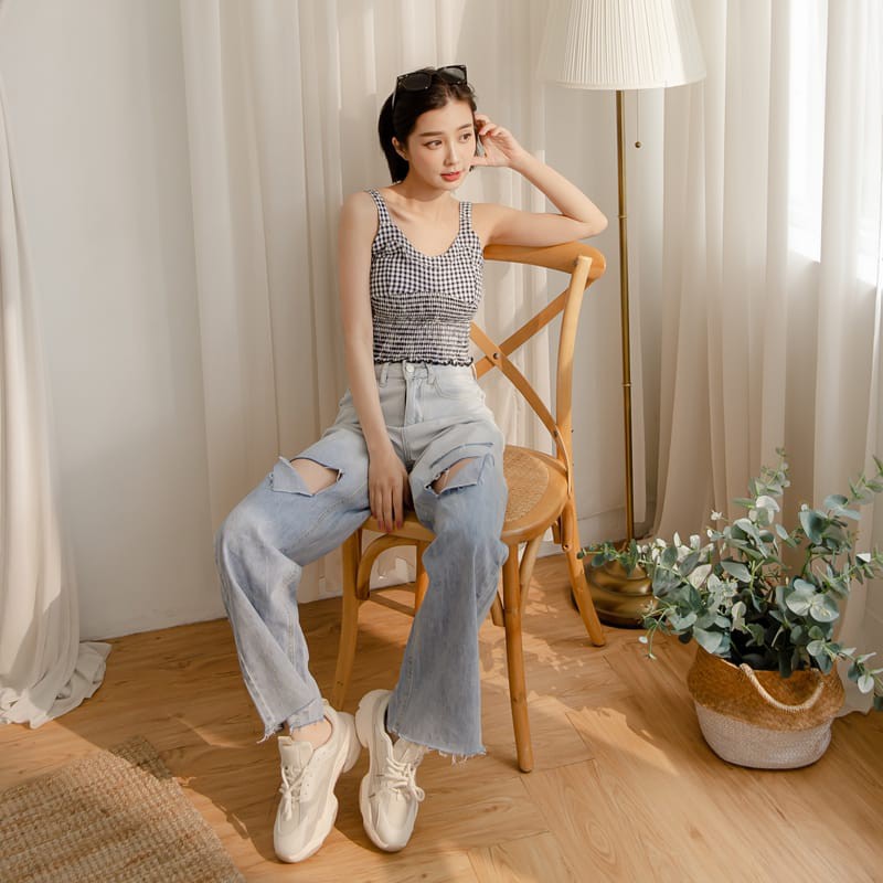 Space Picnic|割破漸層單寧牛仔寬褲【C21054046】