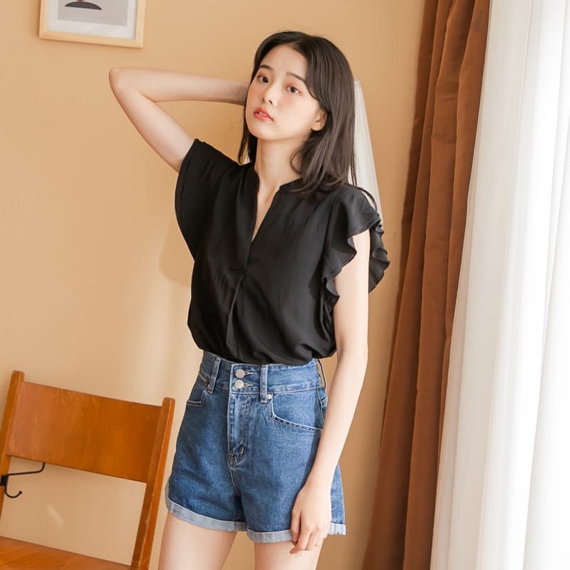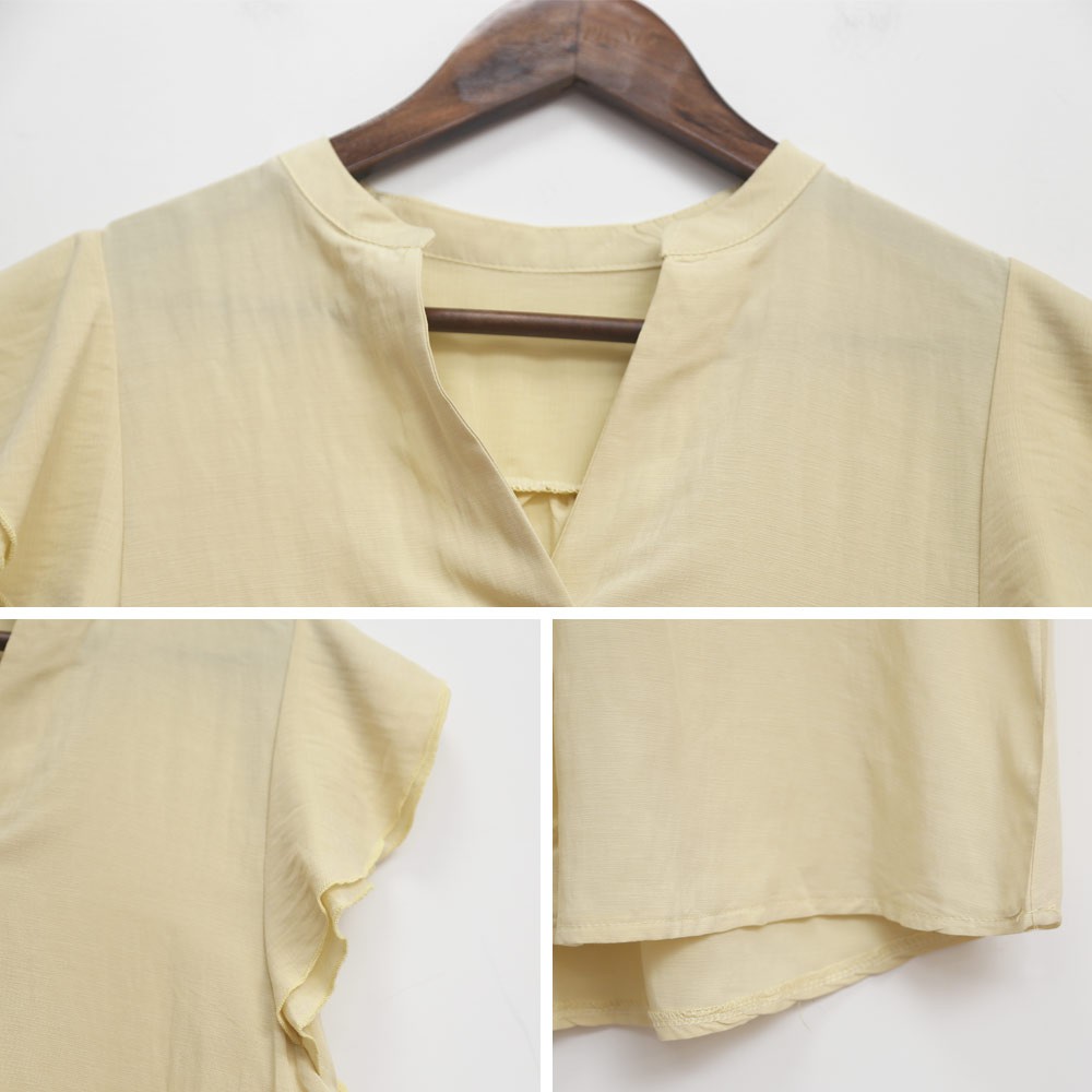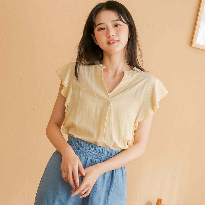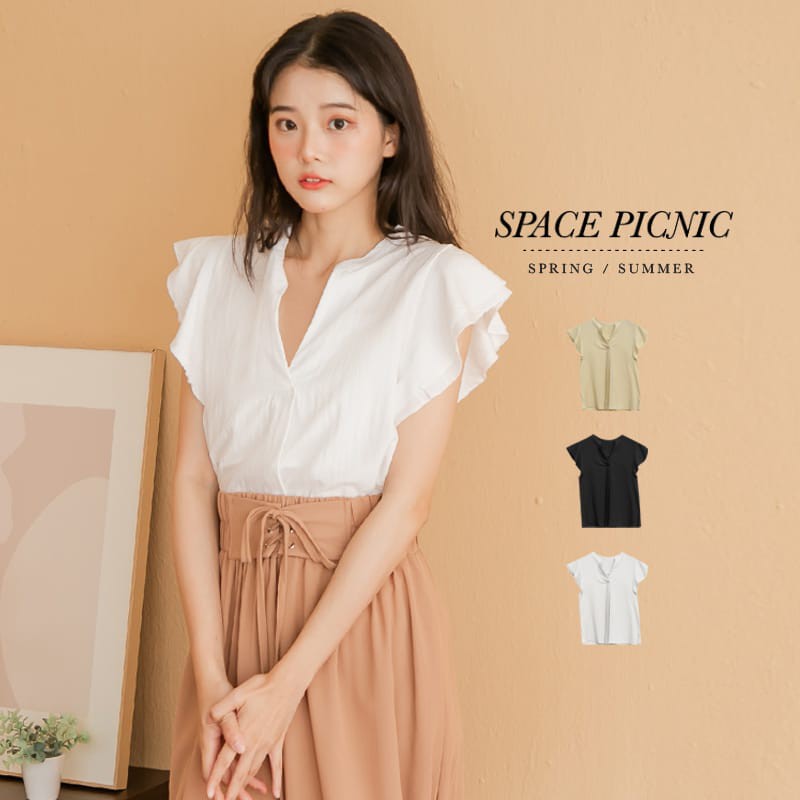 Space Picnic|素面V領荷葉袖上衣【C21052039】