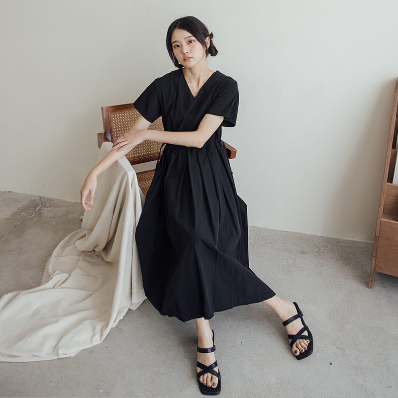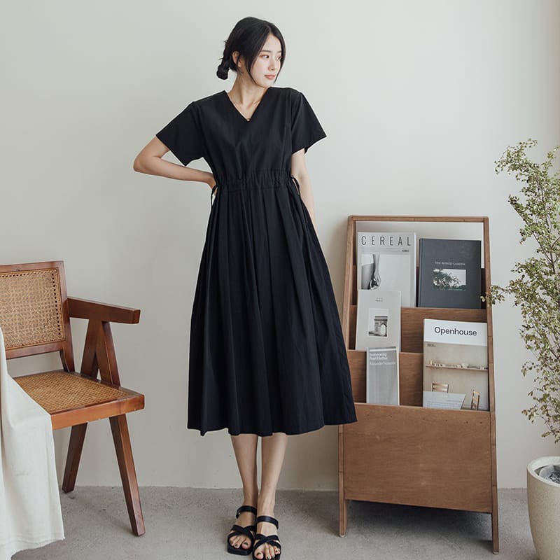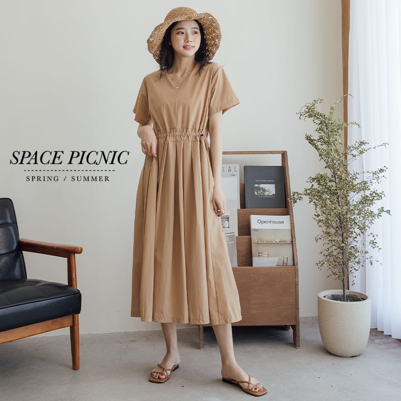 Space Picnic|素面拉鍊腰抽繩短袖洋裝【C21052064】