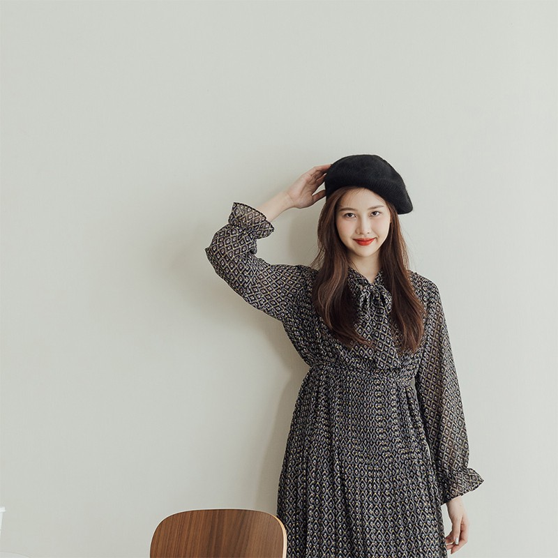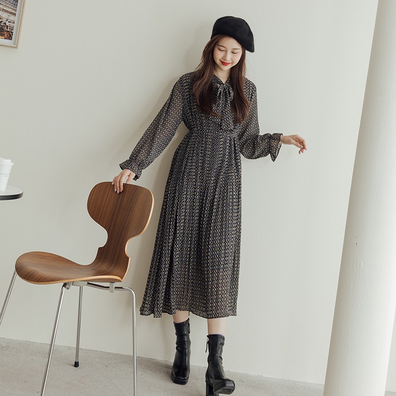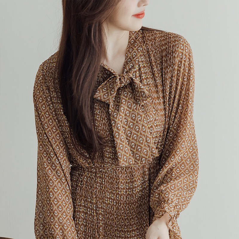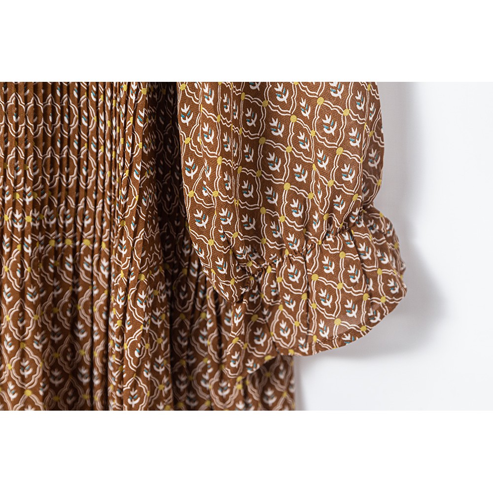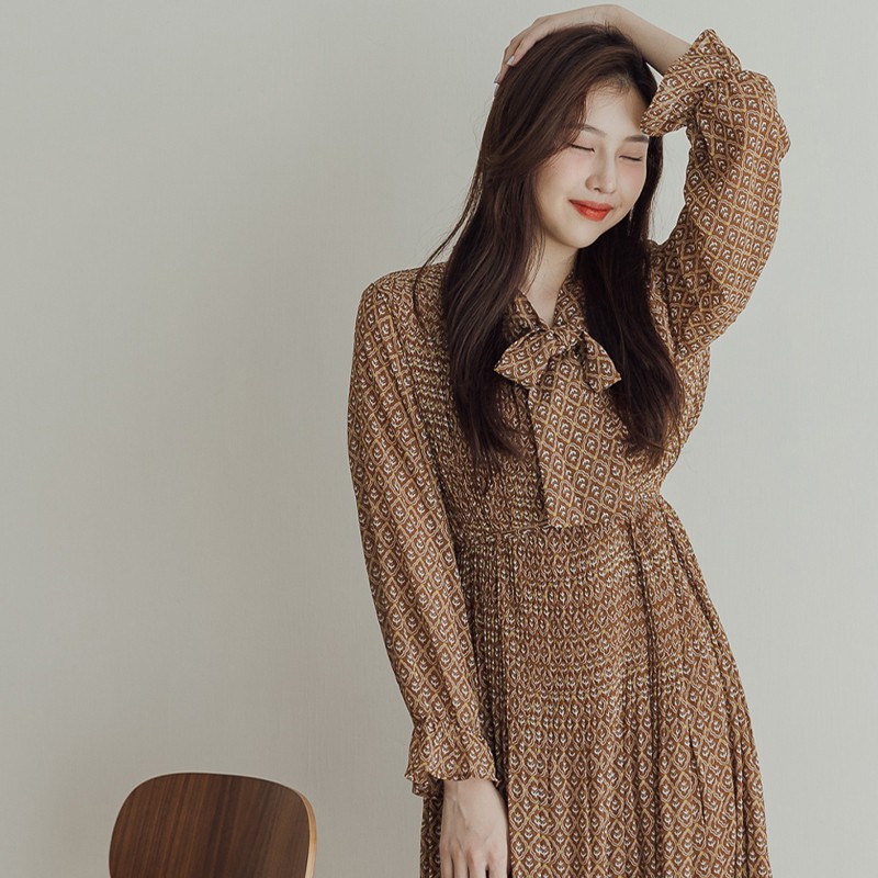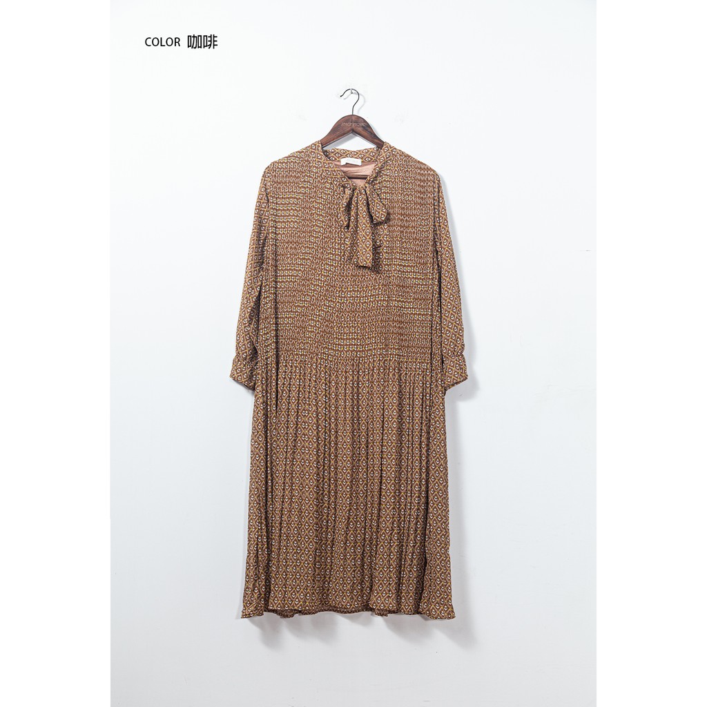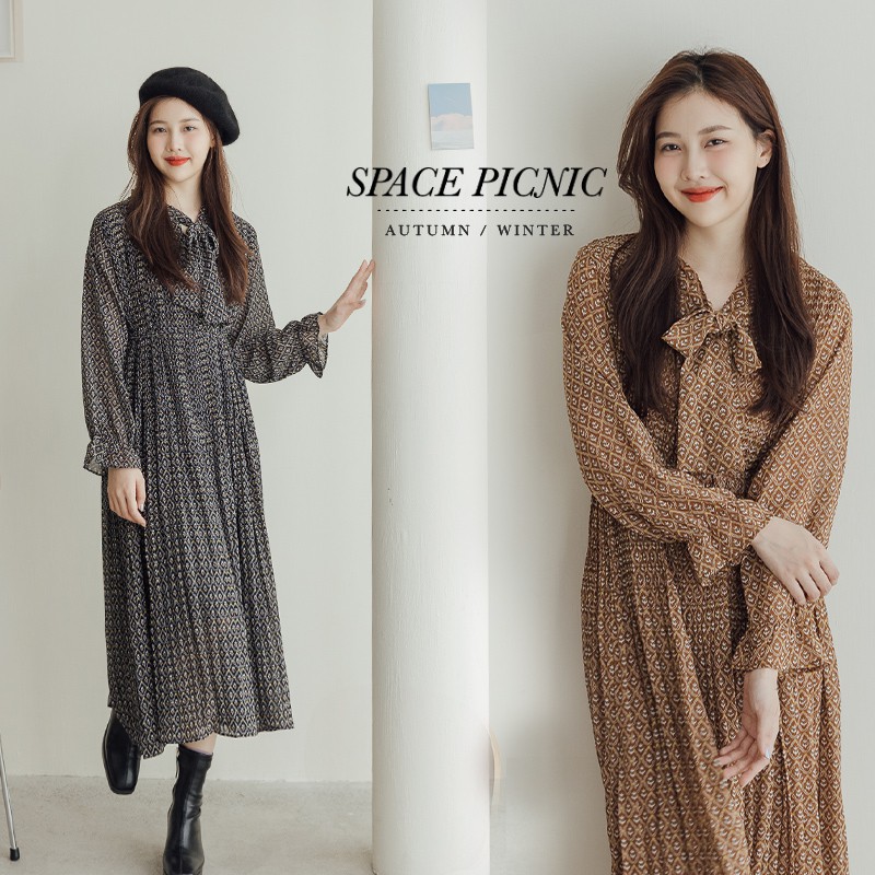 Space Picnic|圖騰綁帶百摺洋裝-附綁繩【C21082068】