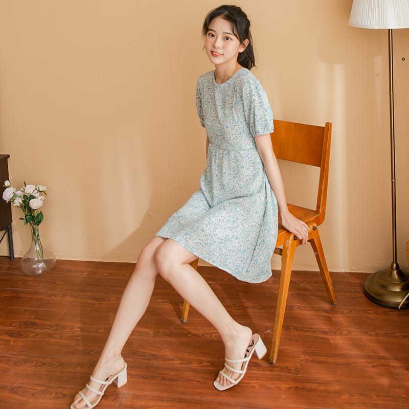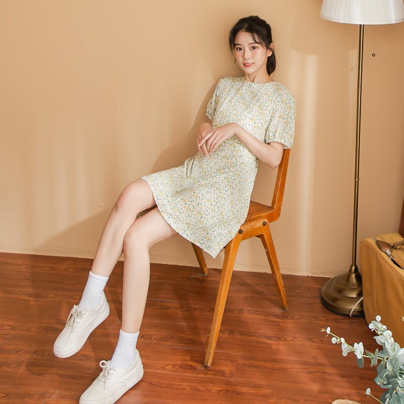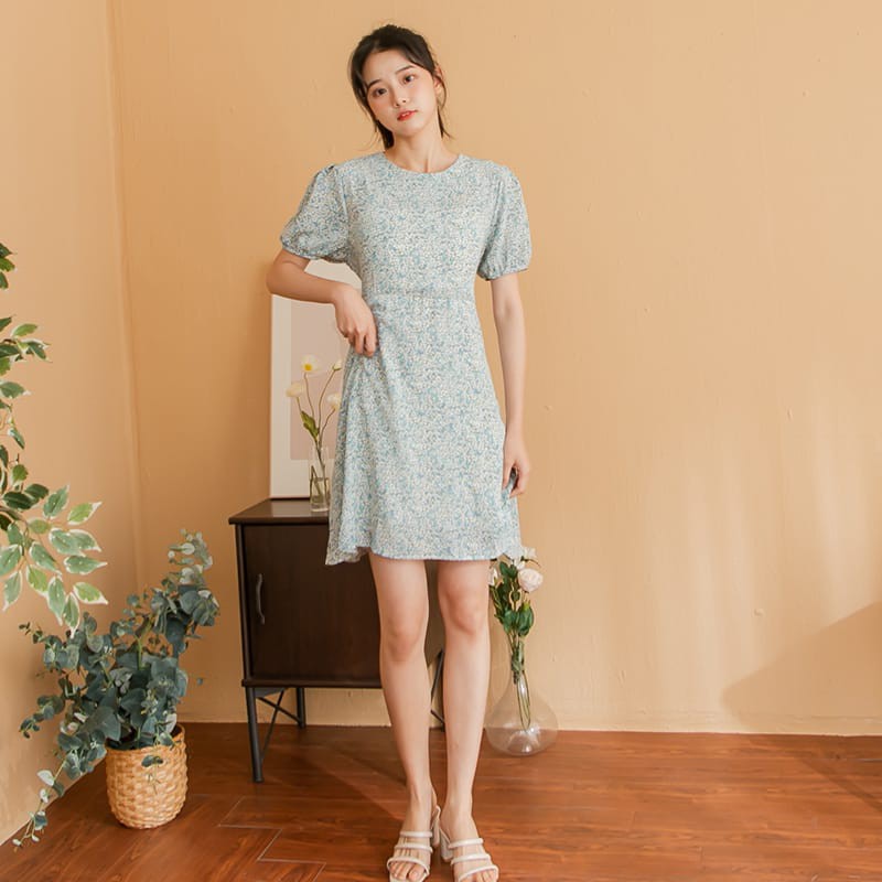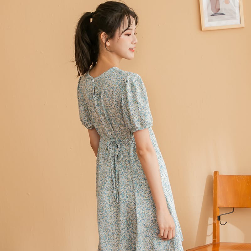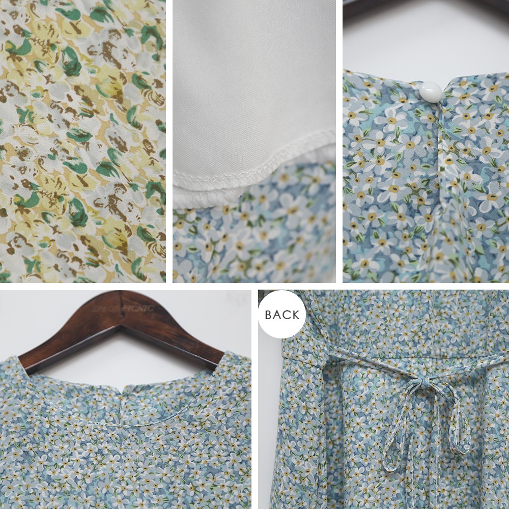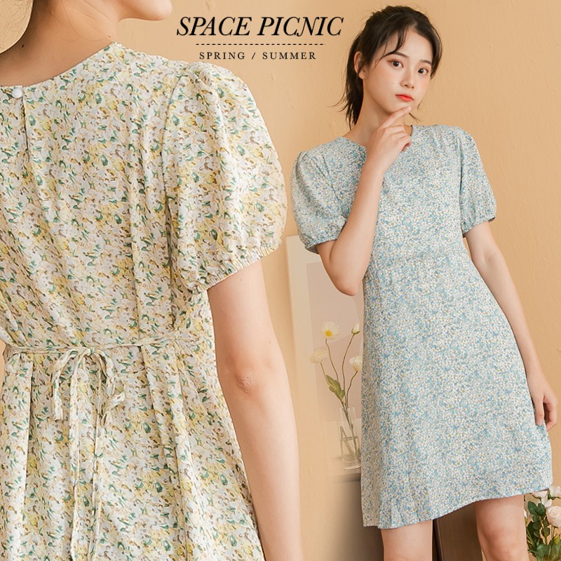Space Picnic|油畫碎花後綁帶雪紡洋裝【C21042074】