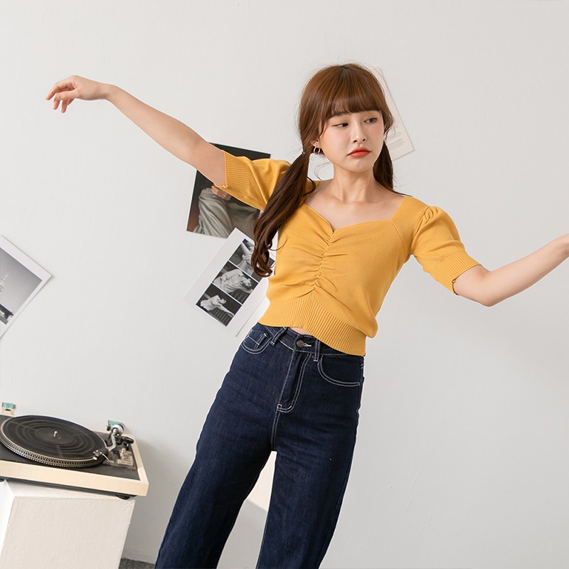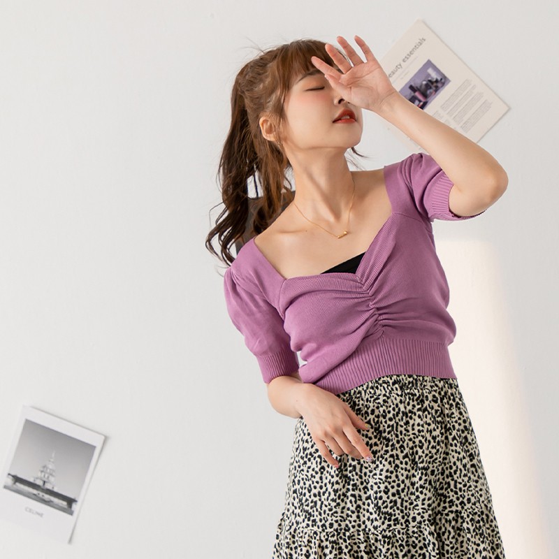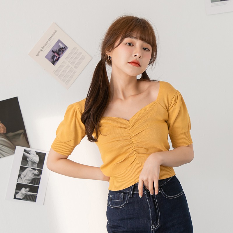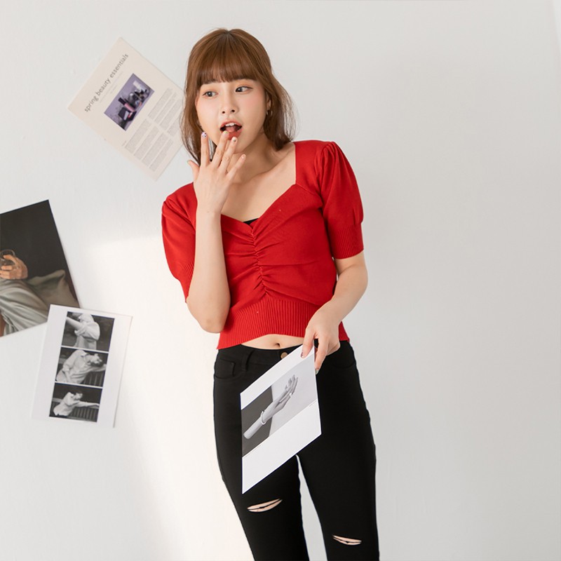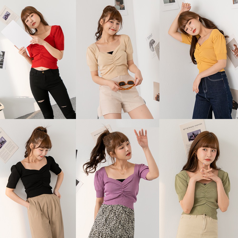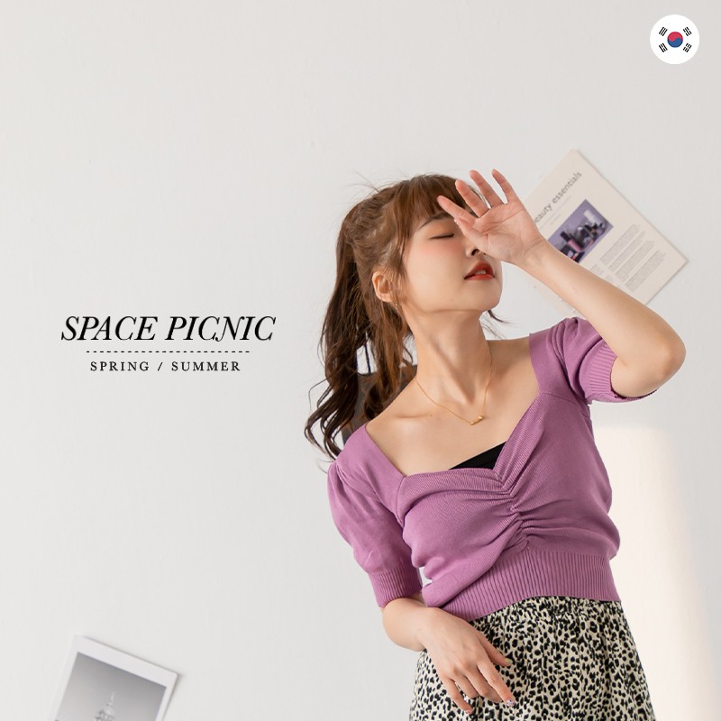 Space Picnic|正韓-方領抓皺短上衣-6色【K21063010】