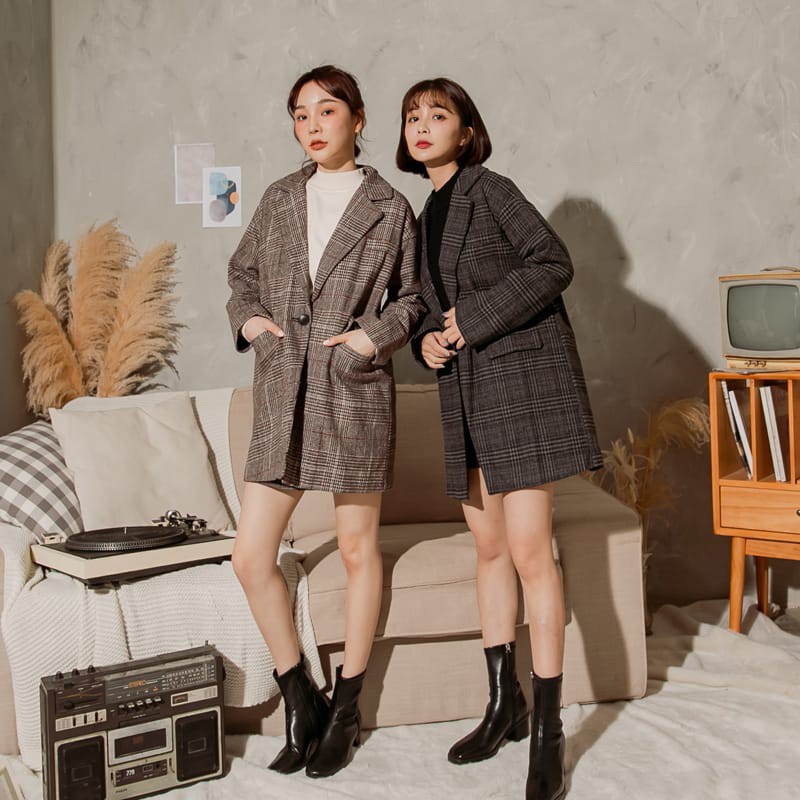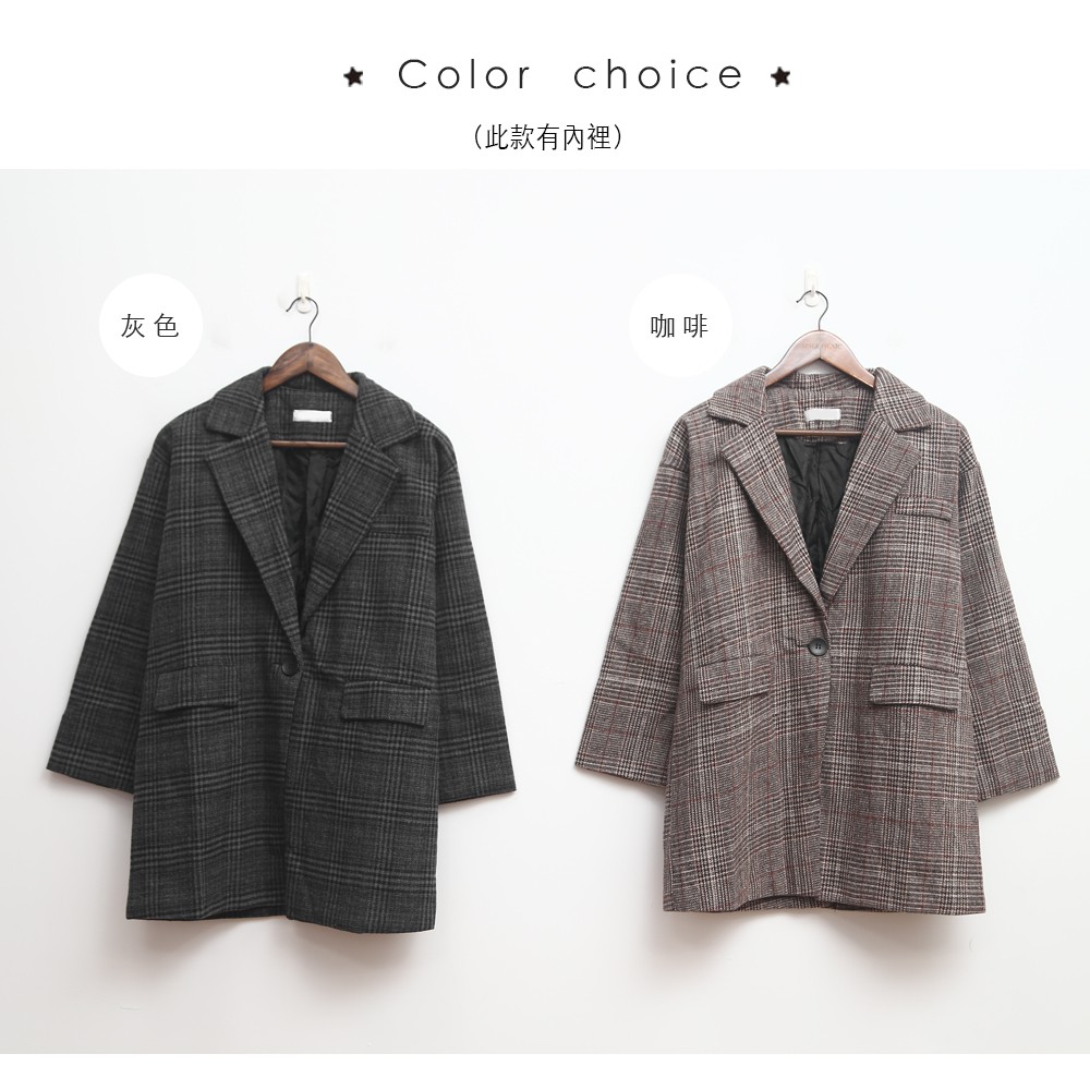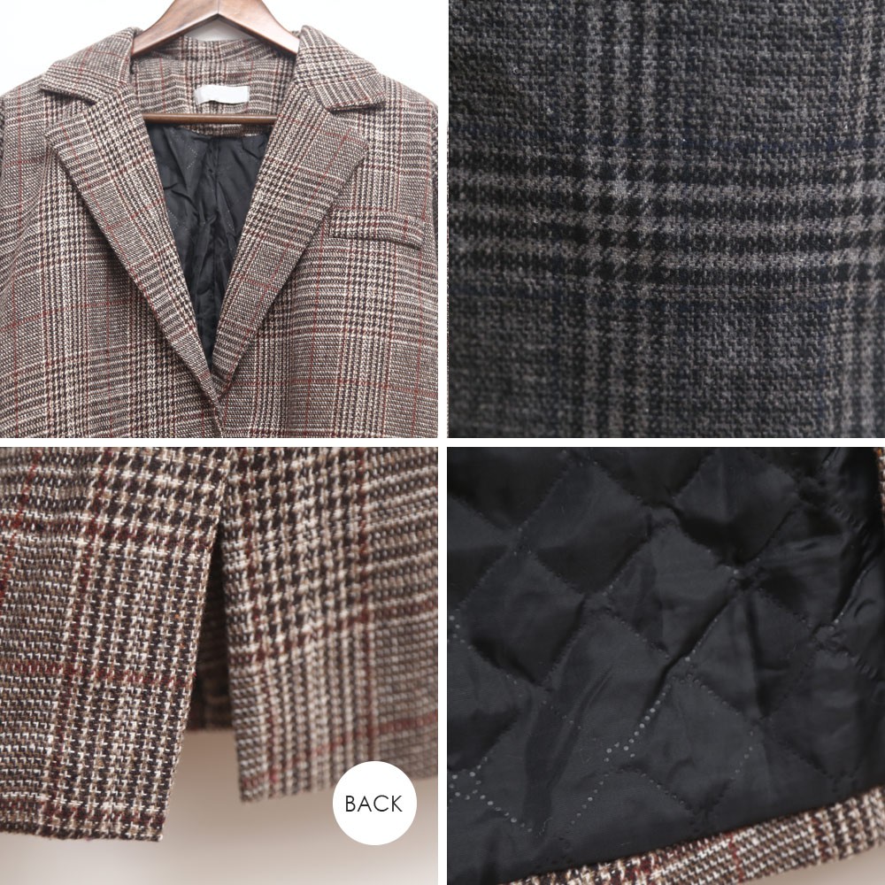 Space Picnic|千鳥格紋毛呢雙口袋西裝長外套【C20114038】