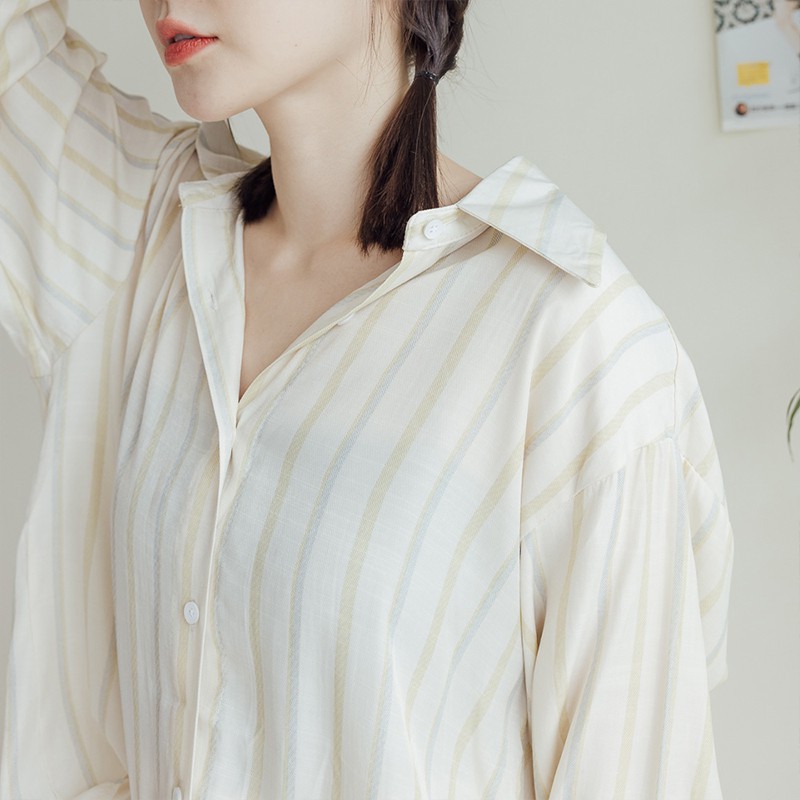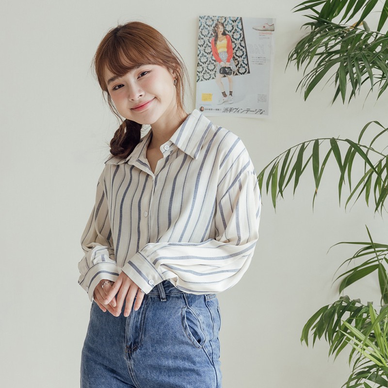 Space Picnic|拼色條紋長袖襯衫-2色【C21073069】