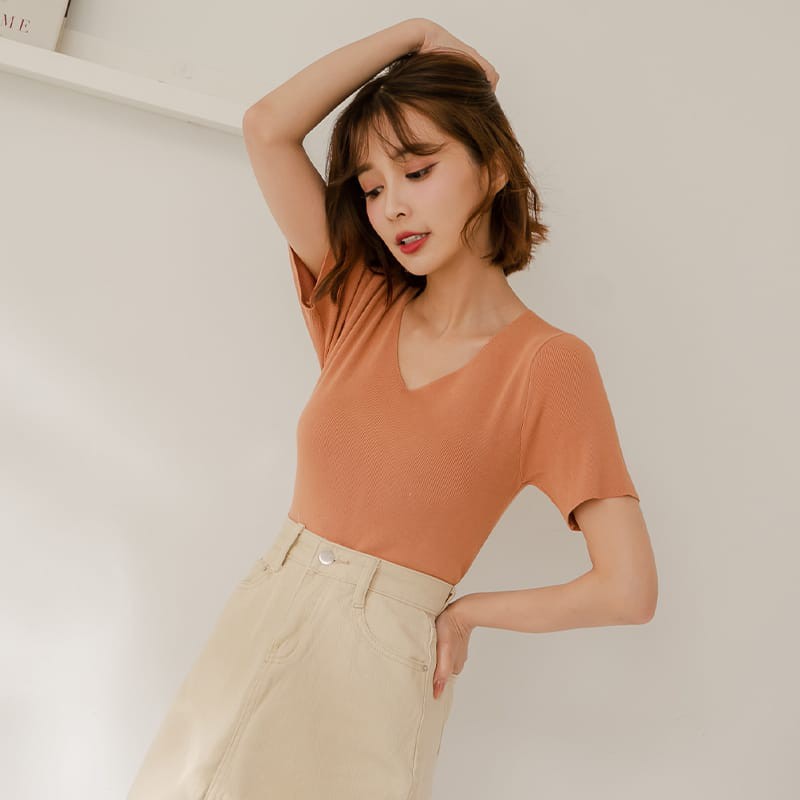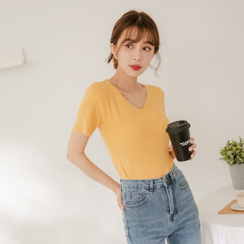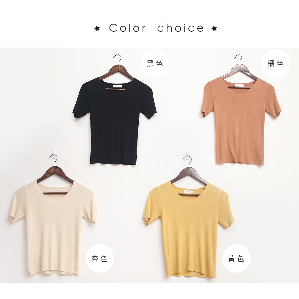 Space Picnic|V領細針織短袖上衣【C21031007】
