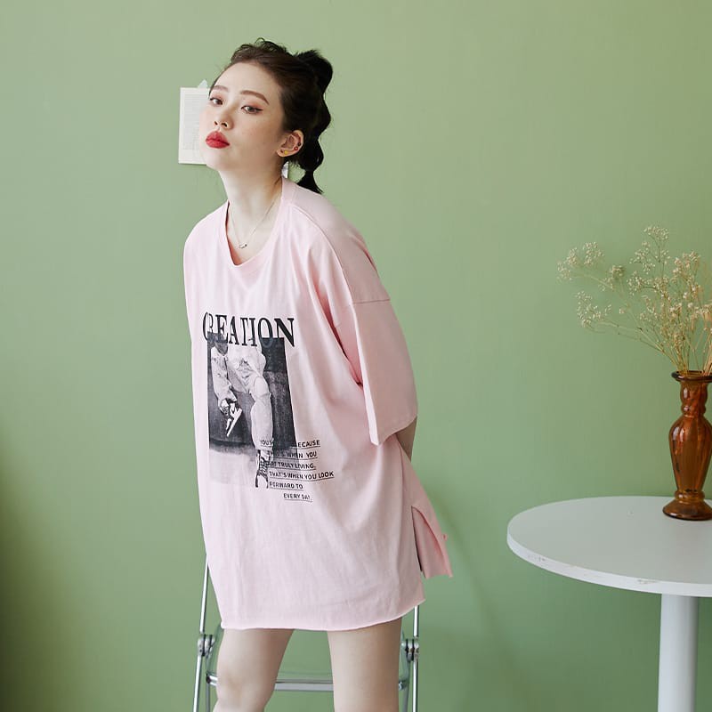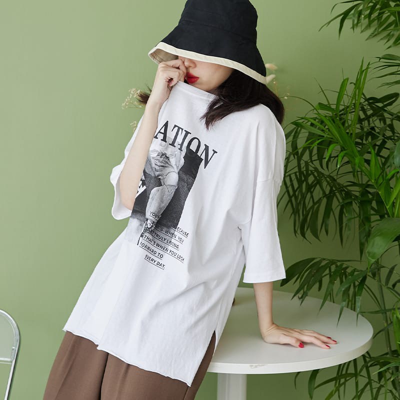Space Picnic|正韓-字母相片印圖寬鬆上衣【K21053009】
