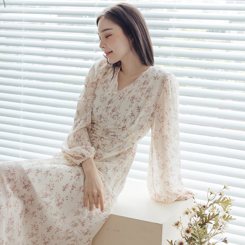 Space Picnic|枝葉綁帶雪紡洋裝-3色【C21073075】