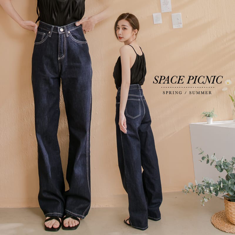 Space Picnic|銀釦單寧牛仔直筒褲【C21052017】