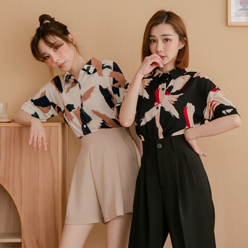 Space Picnic|個性筆刷雪紡短袖襯衫【C21034065】