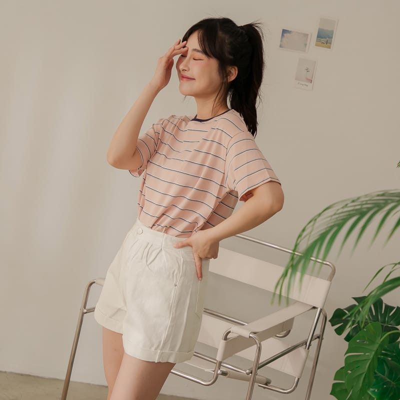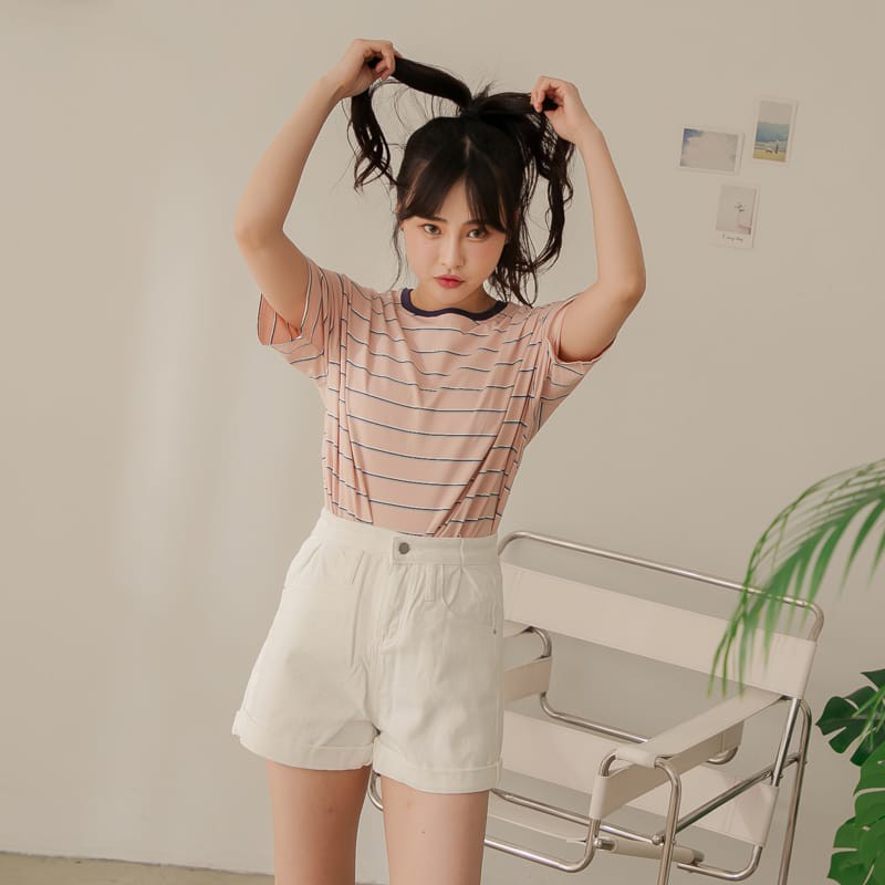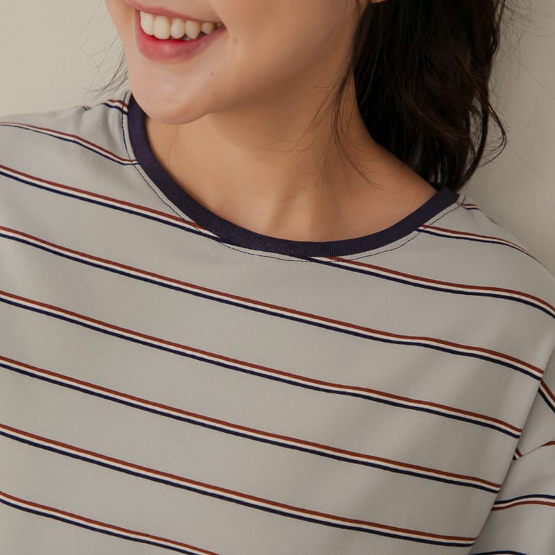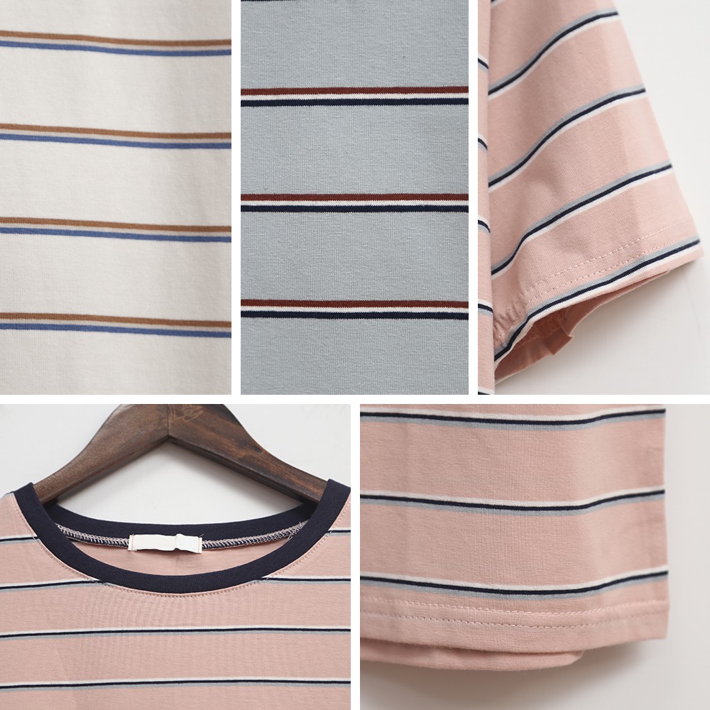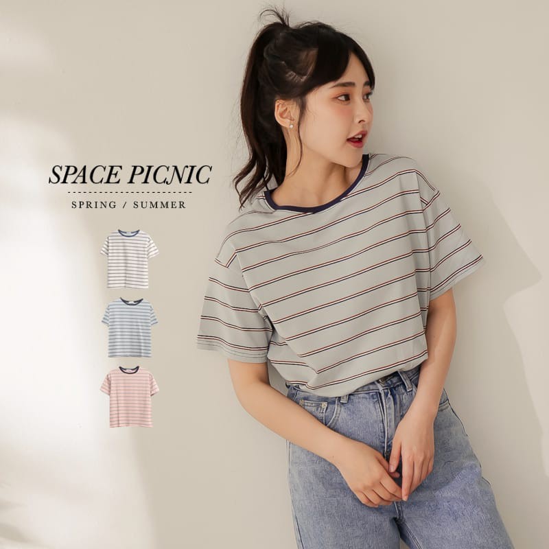Space Picnic|拼色圓領條紋短袖上衣【C21011052】