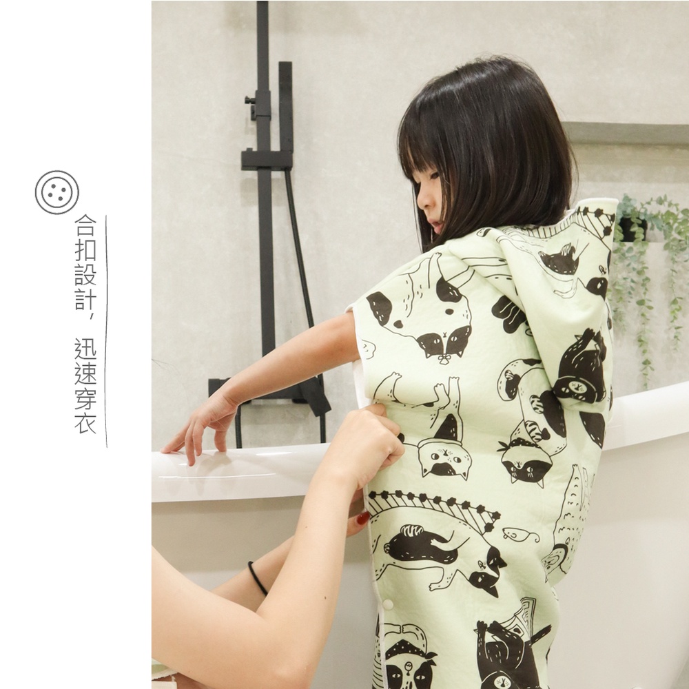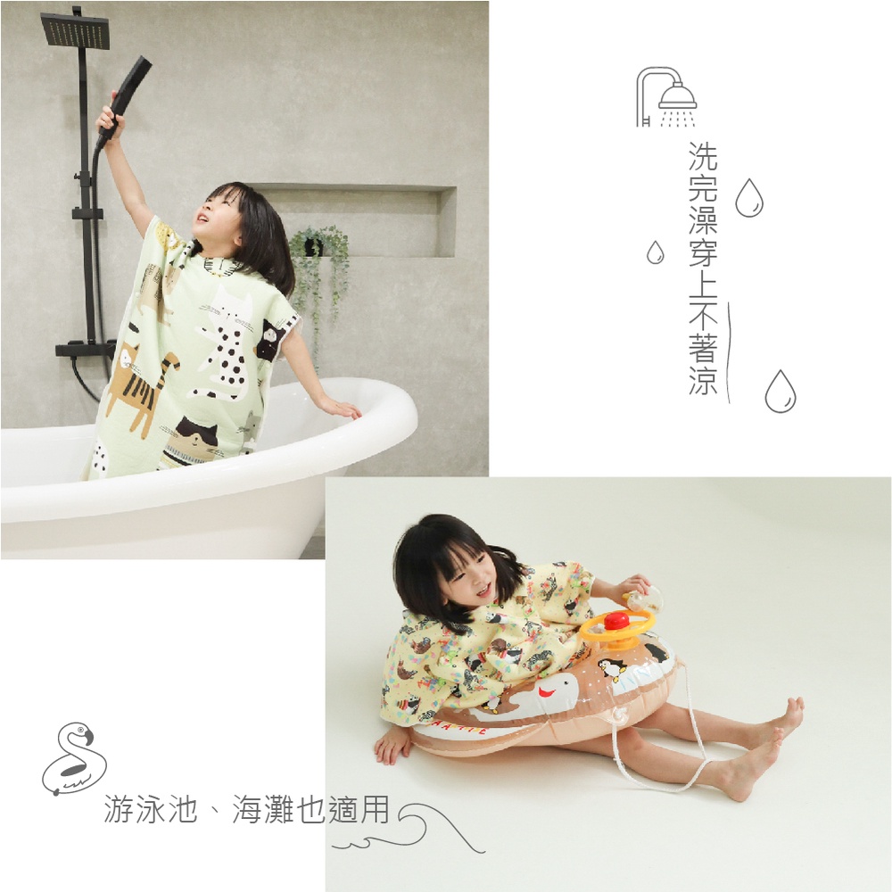 SAVAMUNT賽芙嫚台灣製瞬吸親膚印花兒童連帽浴巾浴袍