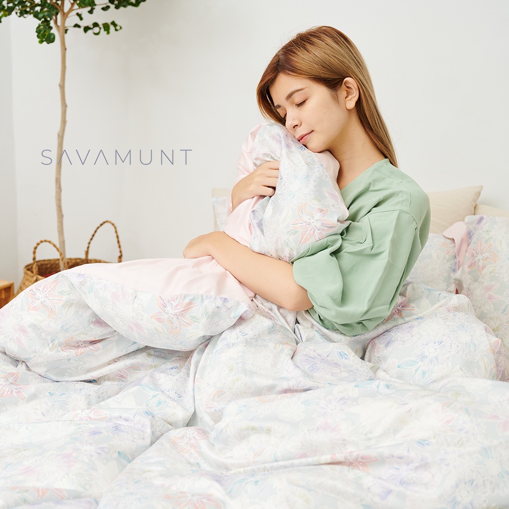 【Savamunt賽芙嫚】美國品牌寢具 奧地利蘭精純天絲TM標準/加大/特大雙人床包三件組/四件組(綻放時刻-粉灰)