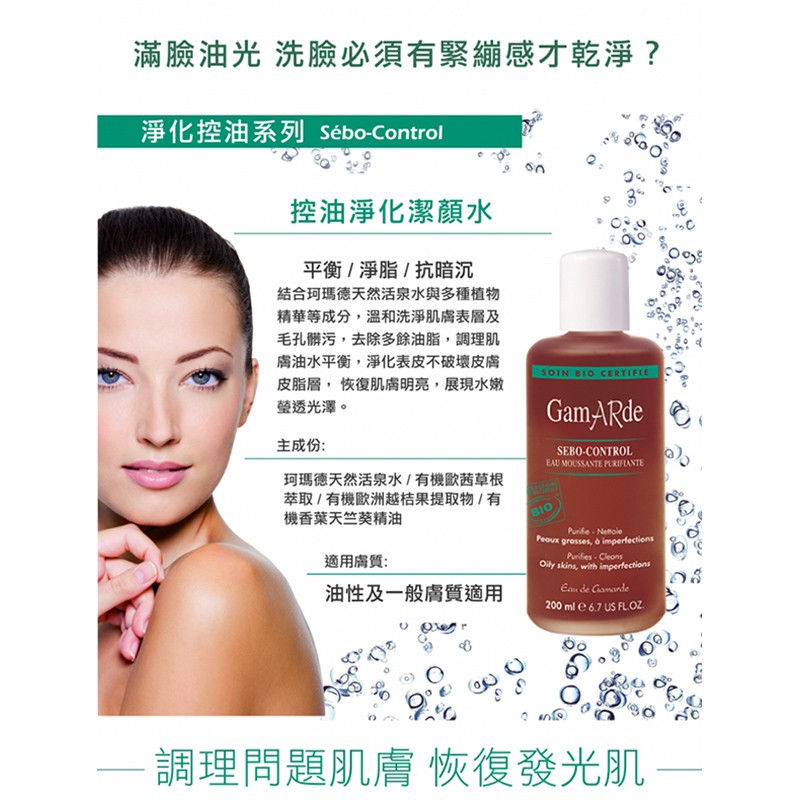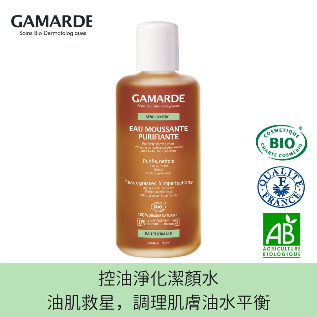 GAMARDE法國珂瑪德 控油淨化潔顏水200ml 夏日控油抗痘 痘痘肌 溫和不緊繃 泡沫細緻 生理痘 油性敏感肌 脂漏