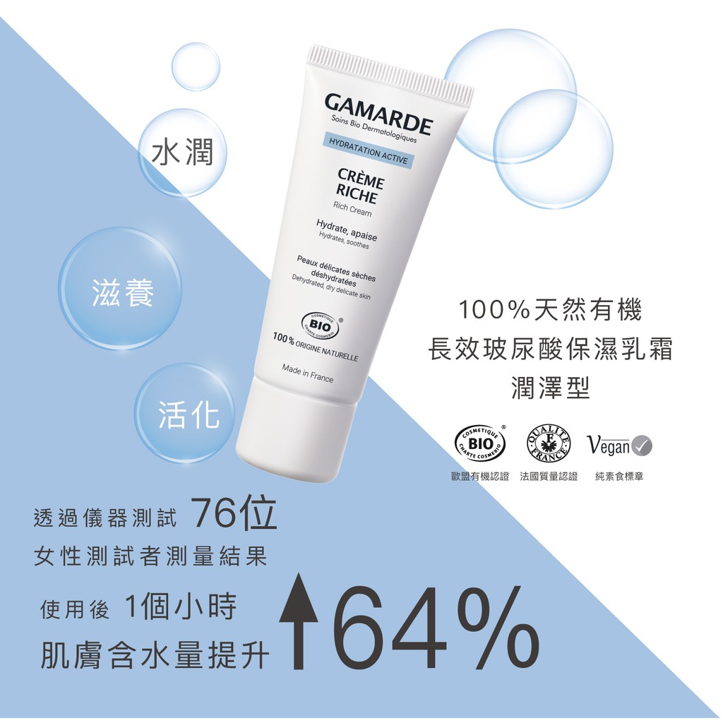 GAMARDE珂瑪德 長效玻尿酸保濕乳霜-潤澤型40g 滋養柔嫩 保濕修護 清爽好吸收 持久滋潤 天然有機醫美保養品