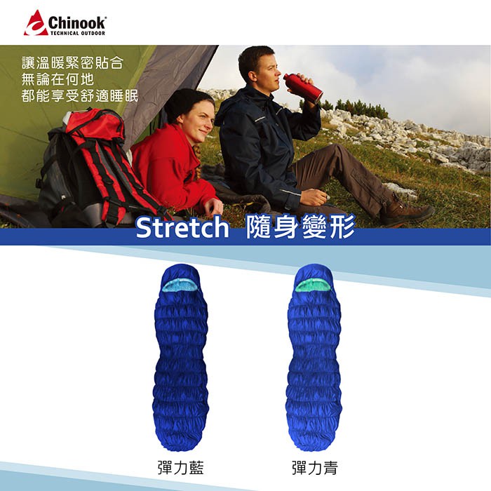 【Chinook】Stretch隨身變形登山露營睡袋-彈力青|品牌旗艦館|20806M