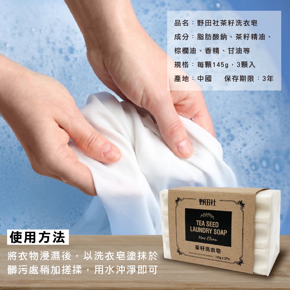 【有效日期已到 便宜出售 不影響使用 介意者勿下單 效期到2025/05/01】野田社-茶籽洗衣皂145g*3入