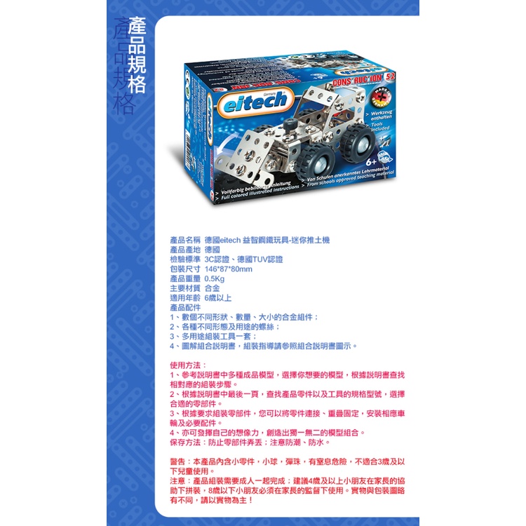 【德國eitech】益智鋼鐵玩具-迷你推土機C52 玩具 汽車玩具 合金 兒童玩具 小學玩具 現貨 diy 推土機玩具