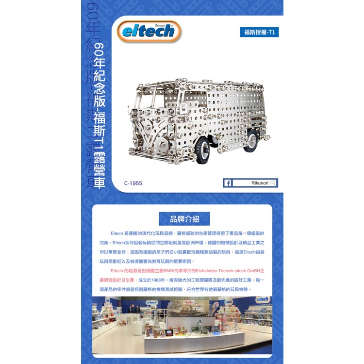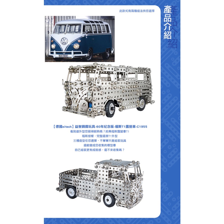 【德國eitech】益智鋼鐵玩具-60年紀念版-福斯T1露營車C1955 限量獨家款 玩具收藏 模型組裝 禮物 現貨