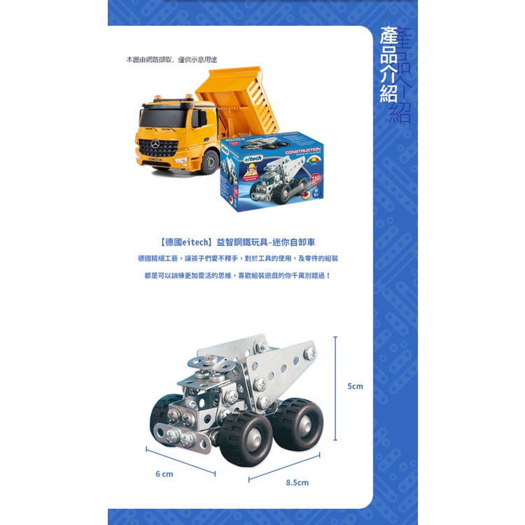 【德國eitech】益智鋼鐵玩具-迷你自卸車C50 玩具 合金 教材 螺絲 兒童玩具 小學玩具 現貨 diy 汽車