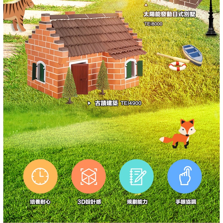 【德國teifoc】DIY益智磚塊建築玩具-太陽能發動日式別墅TEI8000 建築模型 德國製造磚塊 親子互動DIY玩具