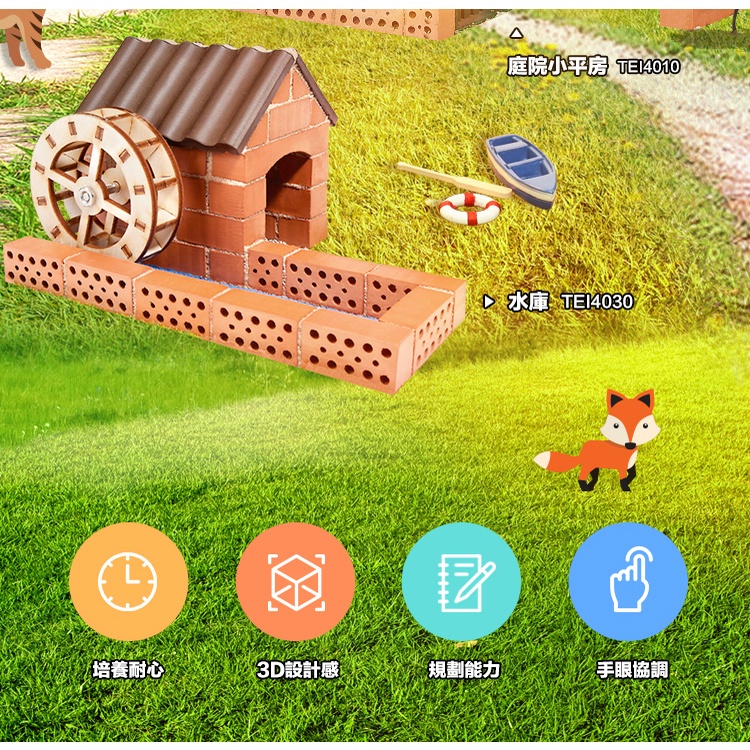 【德國teifoc】DIY益智磚塊建築玩具-庭院小平房TEI4010 德國玩具推薦 益智玩具 蓋房子玩具 建築模型玩具
