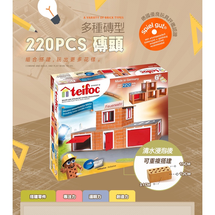 【德國teifoc】DIY益智磚塊建築玩具-消防總署TEI4800 蓋房子 德國製造玩具 手腦協調 DIY手作 手工藝