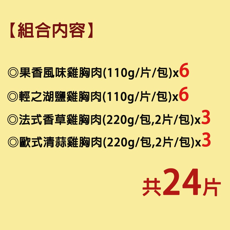 【卜蜂食品】即食雞胸肉-果香風味.輕之湖鹽.歐式清蒜.法式香草 超值18包組 共24片(110g-220g/包)