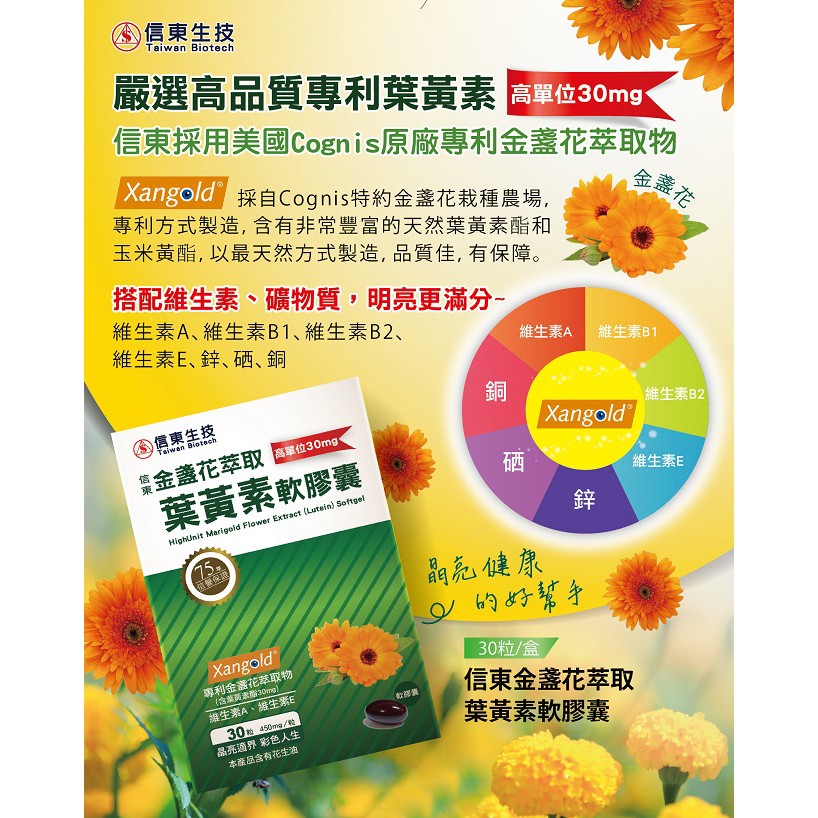 出清品【信東生技】高單位金盞花萃取葉黃素軟膠囊(30粒/盒) [效期2026.06.28]